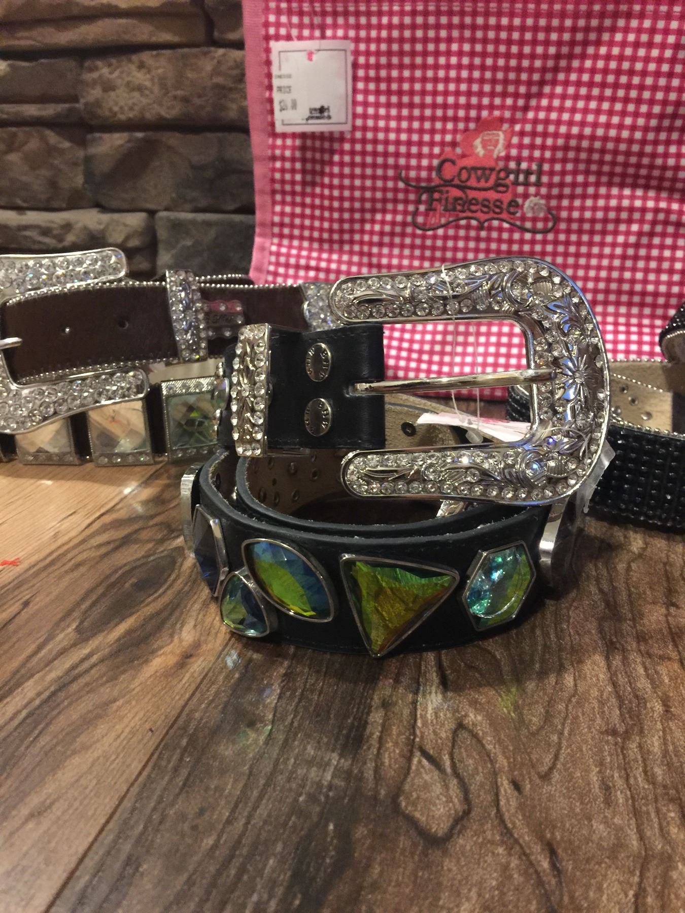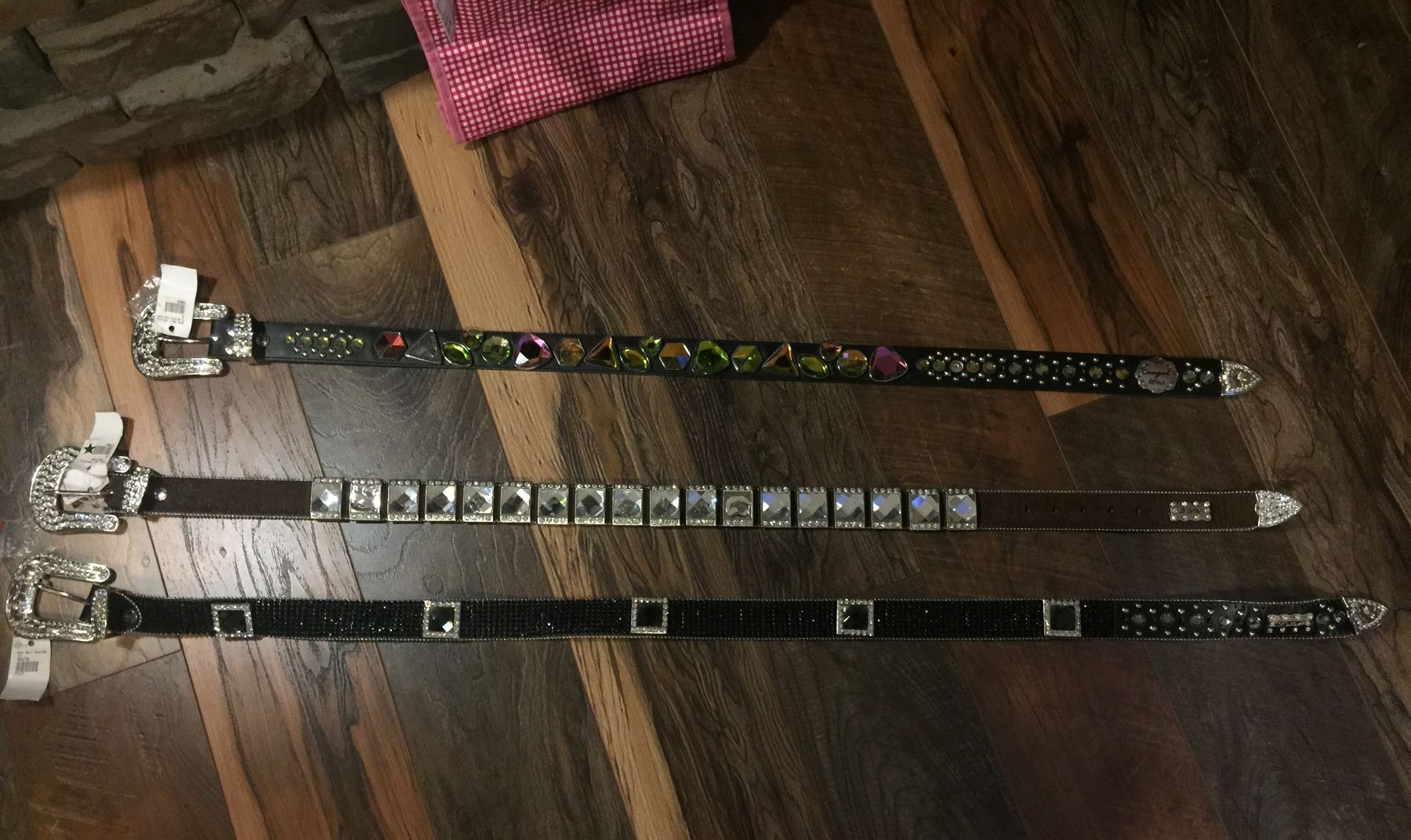 LEATHER WESTERN BLING BELTS. THESE ARE NEW BELTS THAT MAY HAVE SOME DEFECTS IN THE STONES.