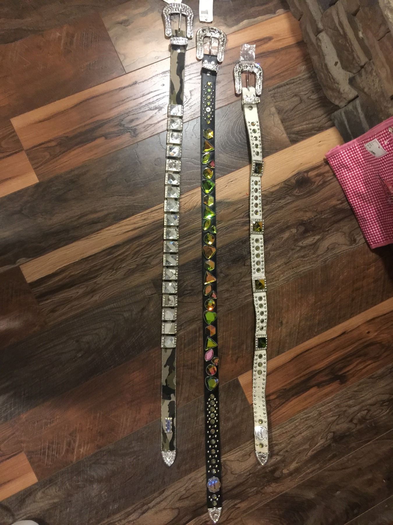 LEATHER WESTERN BLING BELTS. THESE ARE NEW BELTS THAT MAY HAVE SOME DEFECTS IN THE STONES.