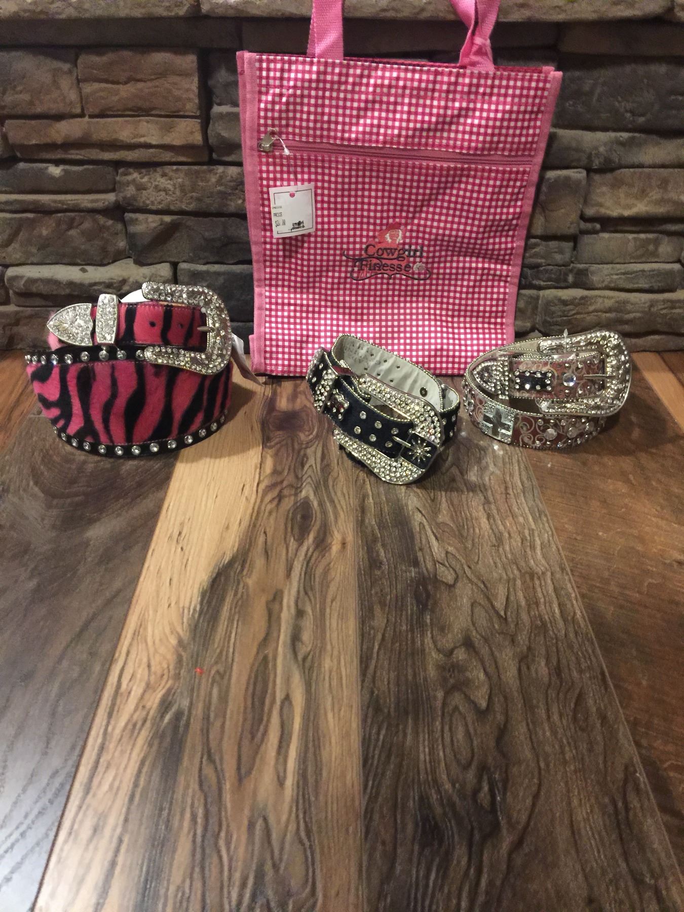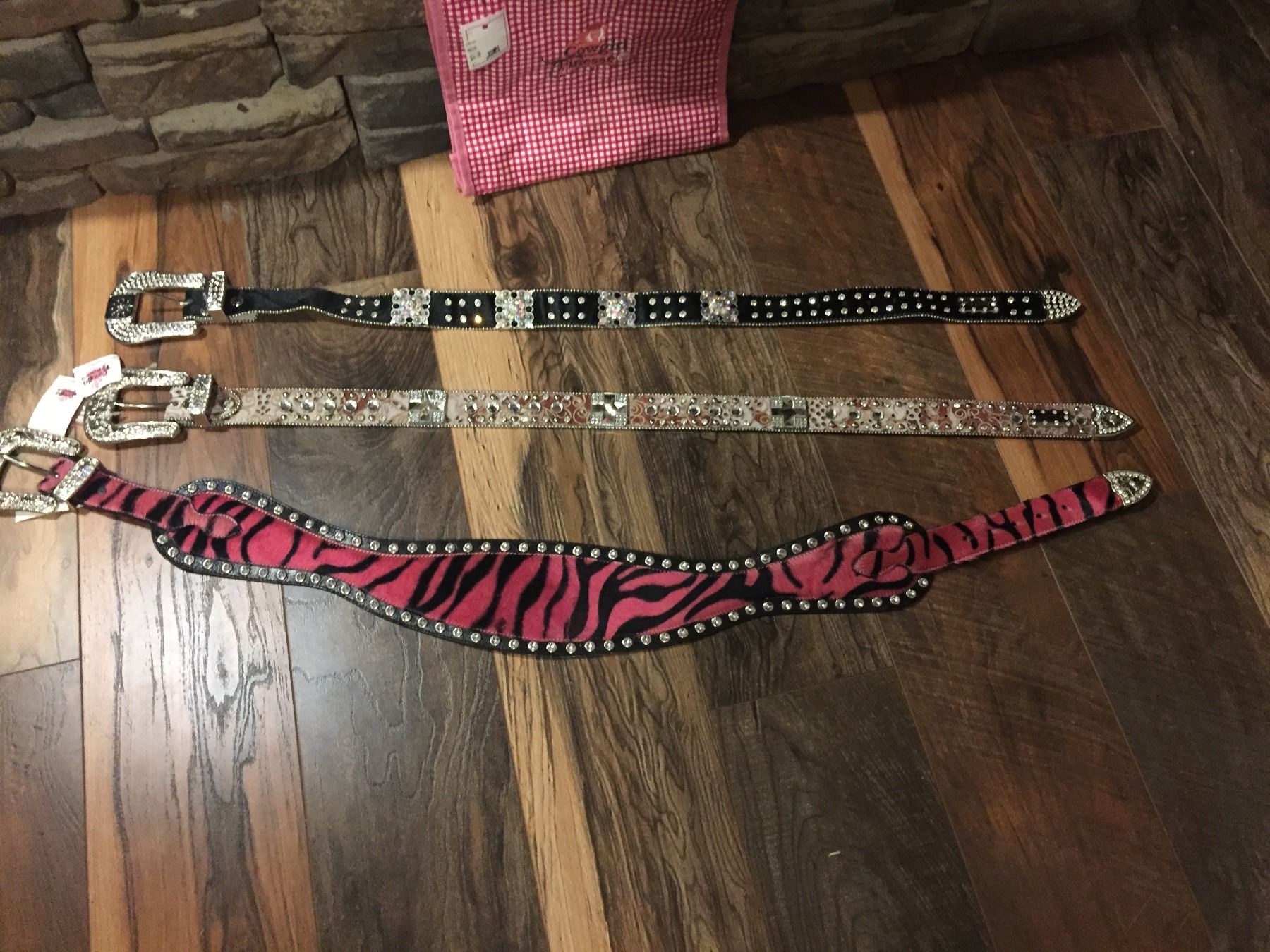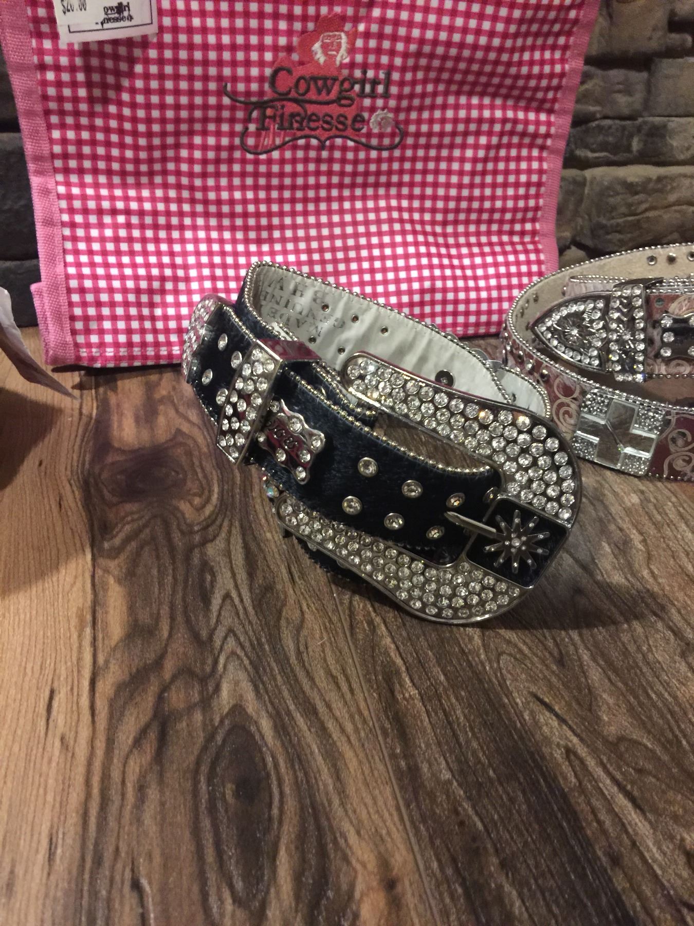 LEATHER WESTERN BLING BELTS. THESE ARE NEW BELTS THAT MAY HAVE SOME DEFECTS IN THE STONES.