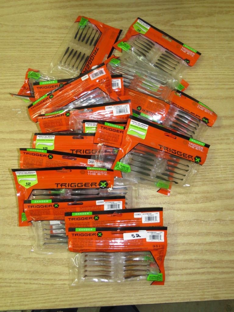 GRUBS & LURES - Trigger, Paddle, Tail Minnows - Black, Gold, Silver, Emerald, Qty 24 pkgs