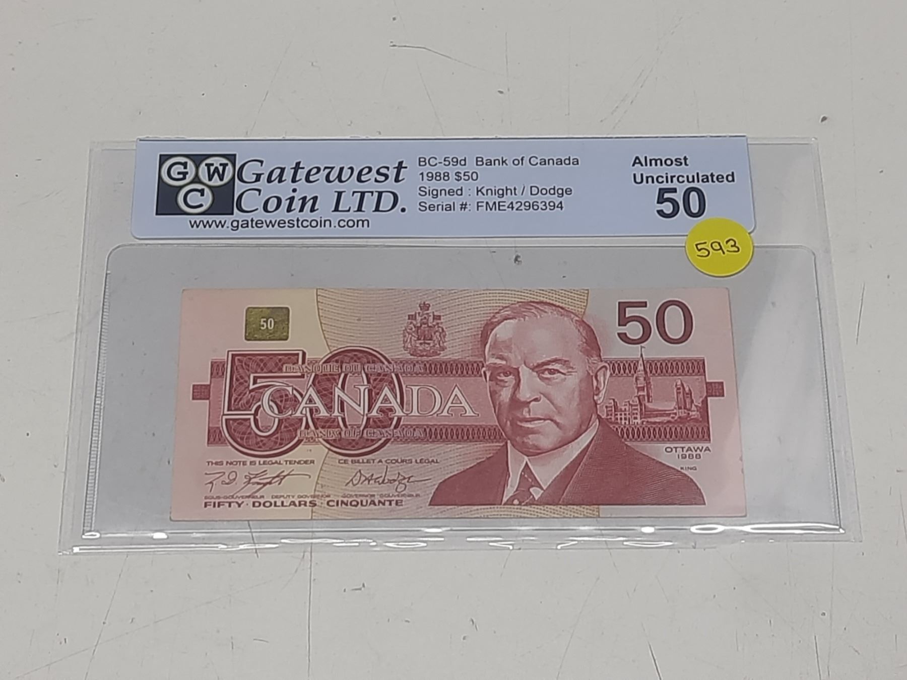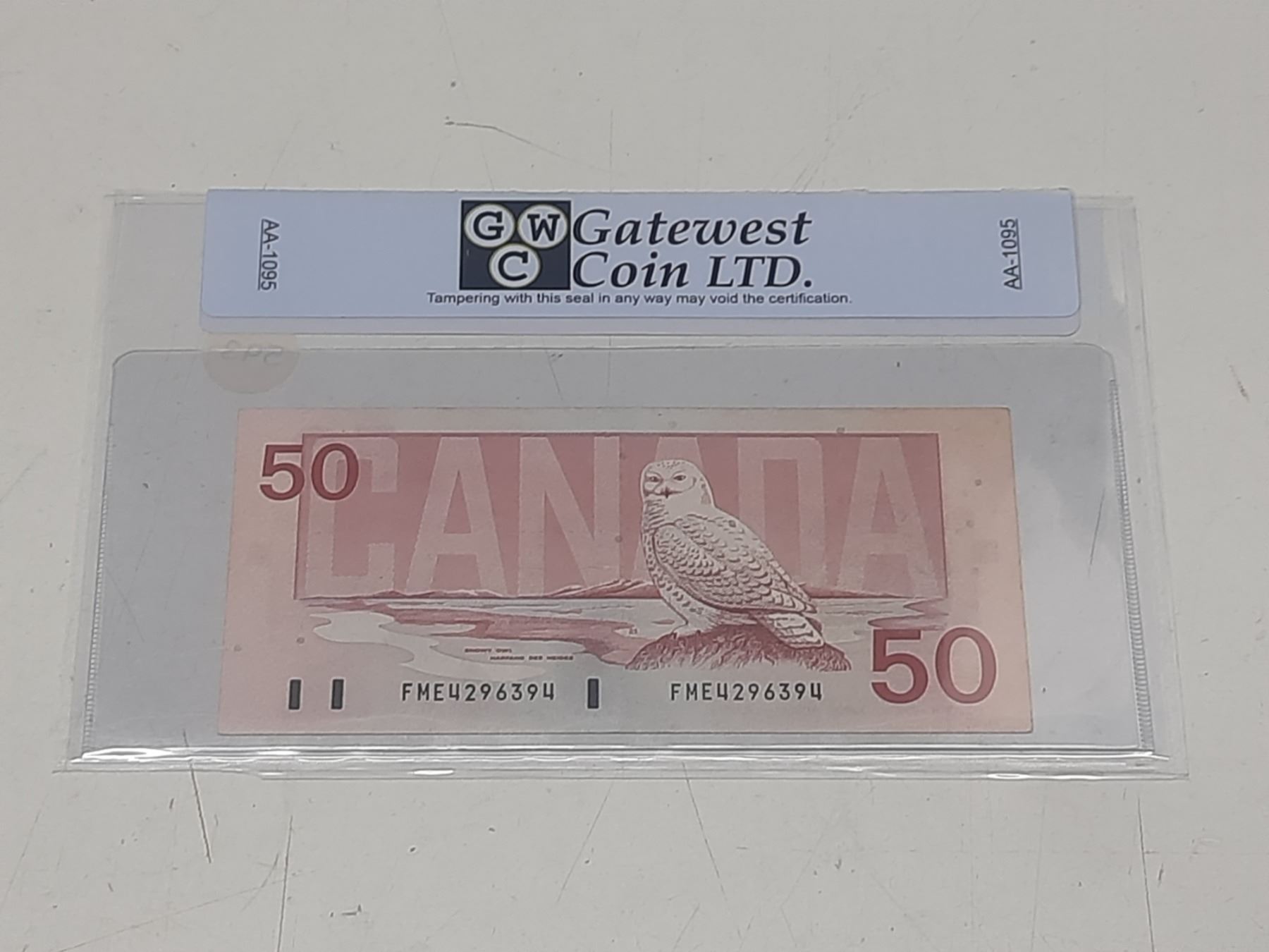 GWC - BC-59d Bank of Canada 1988 $50 Signed : Knight / Dodge - Serial #: FME4296394 - Almost Uncirculated 50.