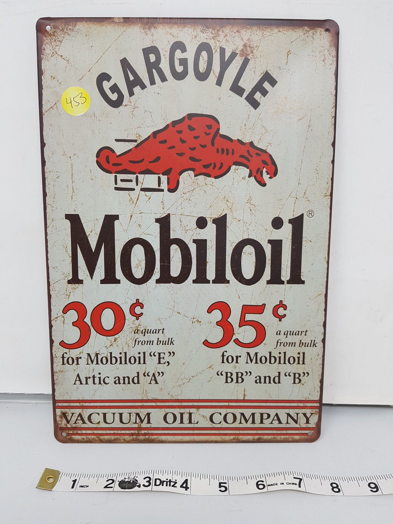 Gargoyle Mobiloil reproduction sign 11.5 X 8"