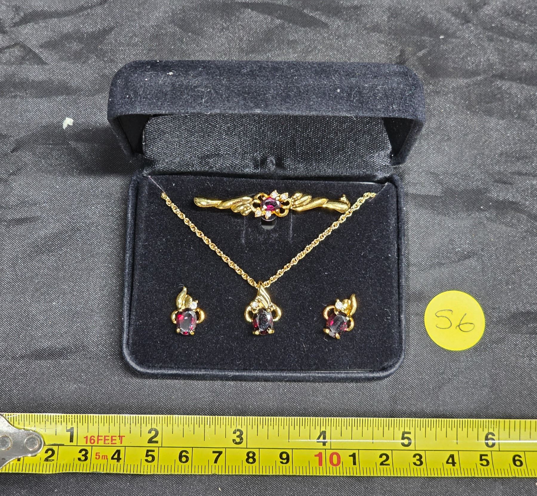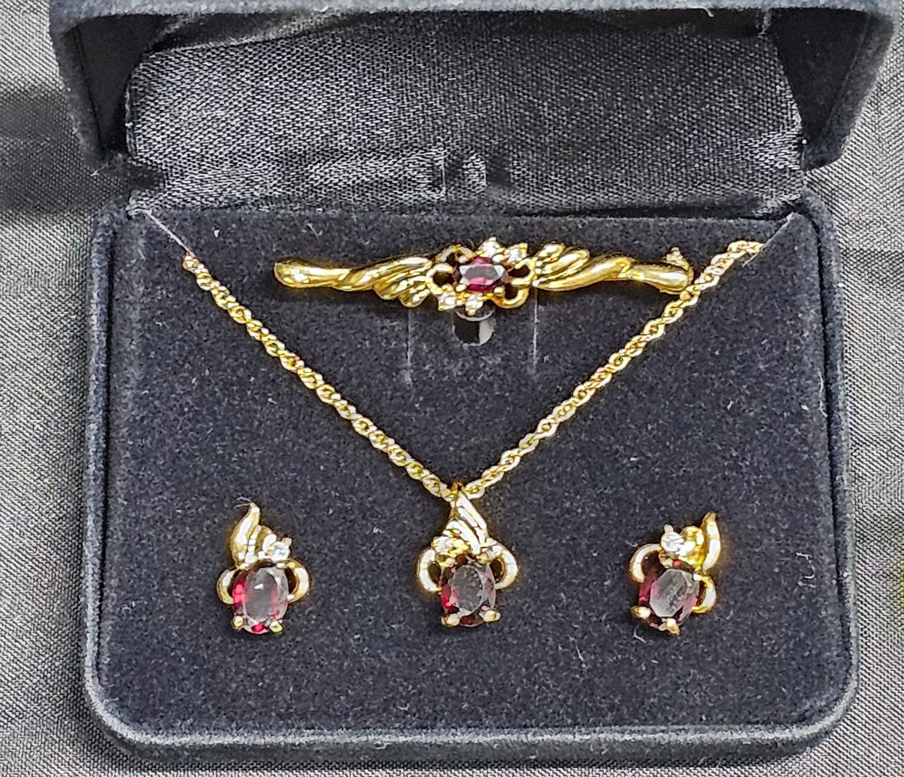 Garnet Necklace, Brooch, and Earring Set in Box (Unverified)