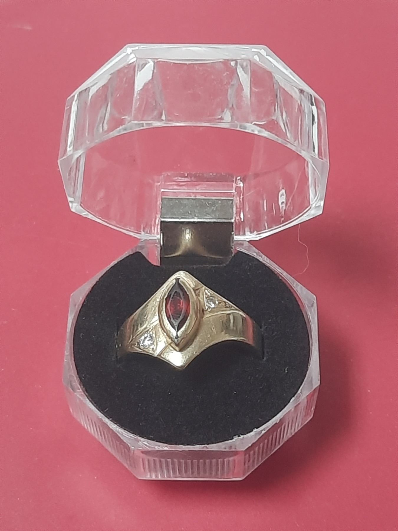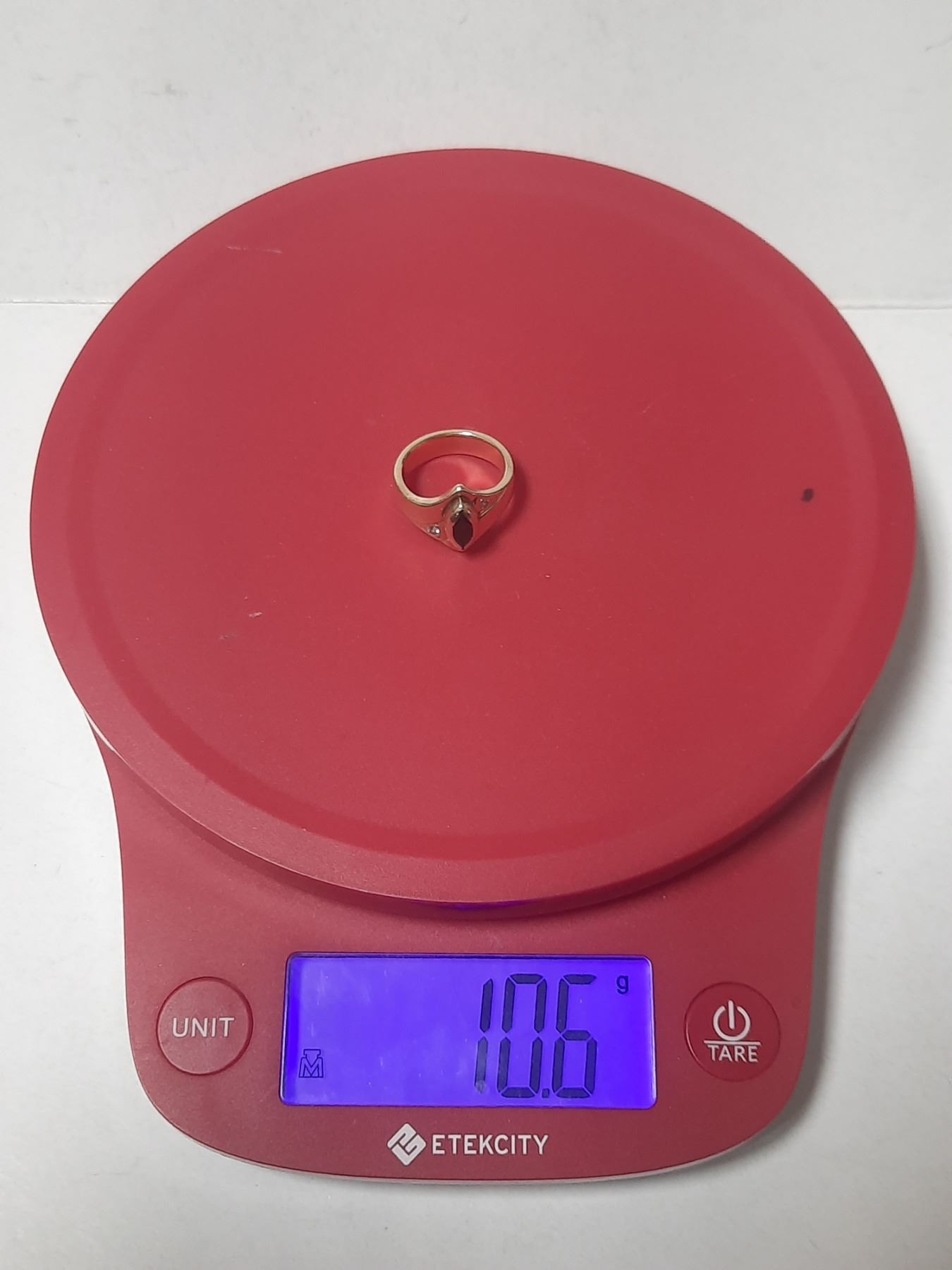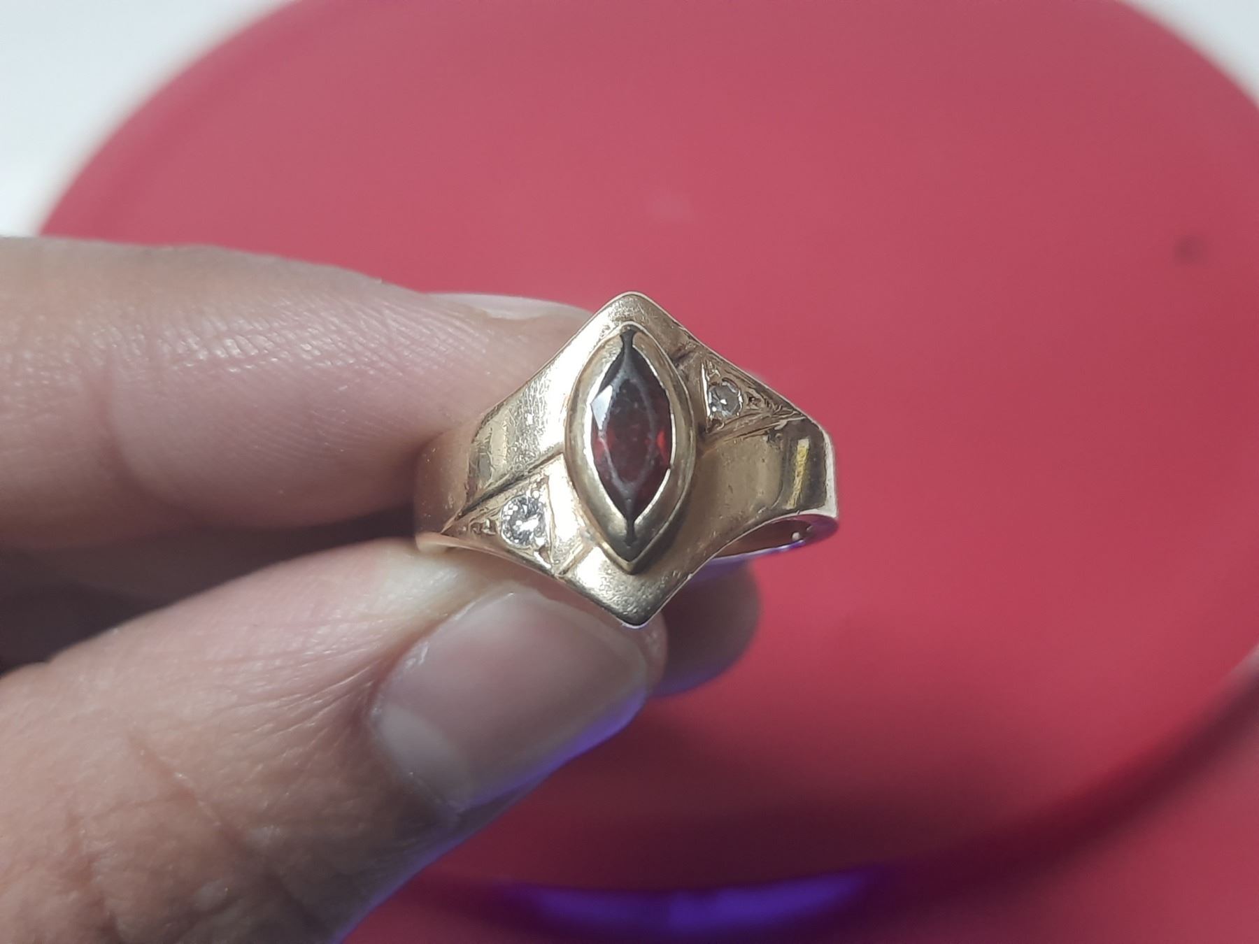 Garnet Ring was made by Bench in Kamloops using 10 and 14 K.T. Gold - Weight 10.6g - Size 8.5 (Description as per consigner, we can't prove authenticity)