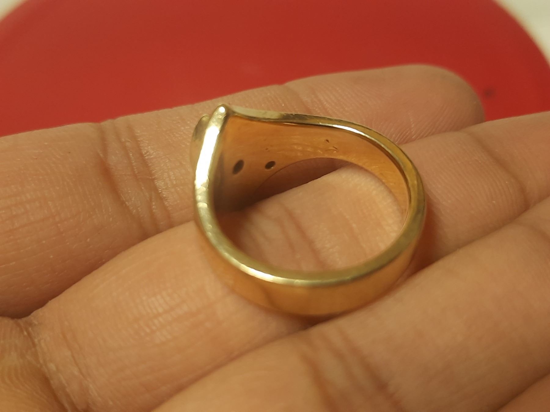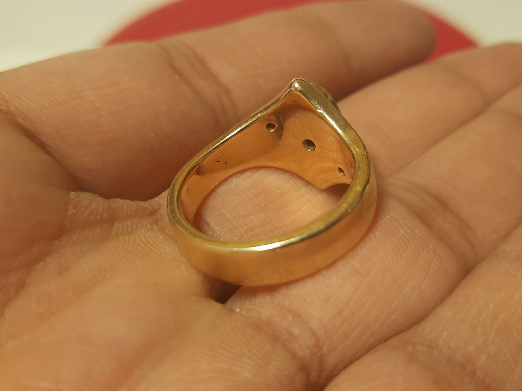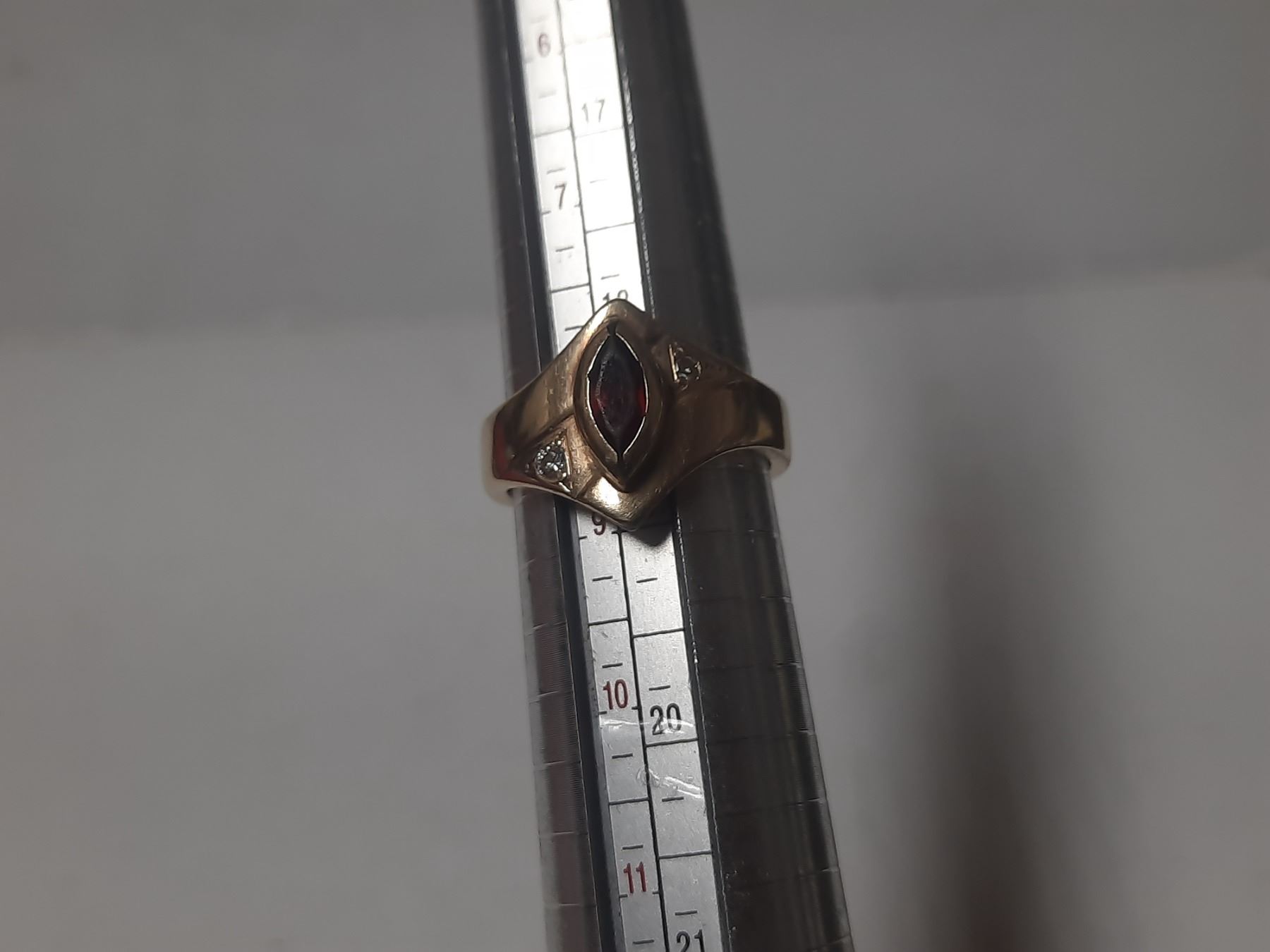 Garnet Ring was made by Bench in Kamloops using 10 and 14 K.T. Gold - Weight 10.6g - Size 8.5 (Description as per consigner, we can't prove authenticity)