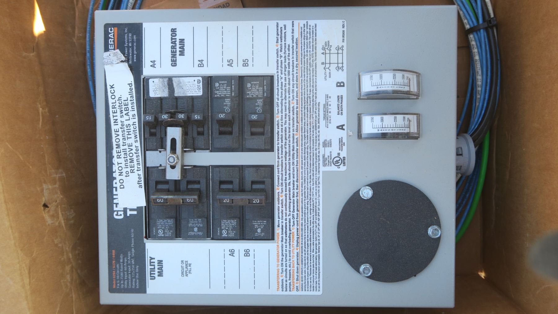 Generator safety transfer switch (Model 6294/6376/6408)