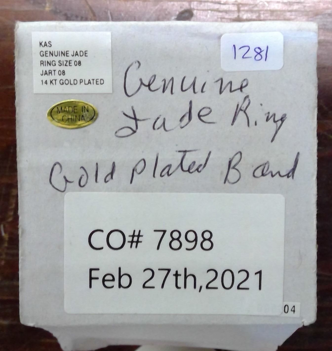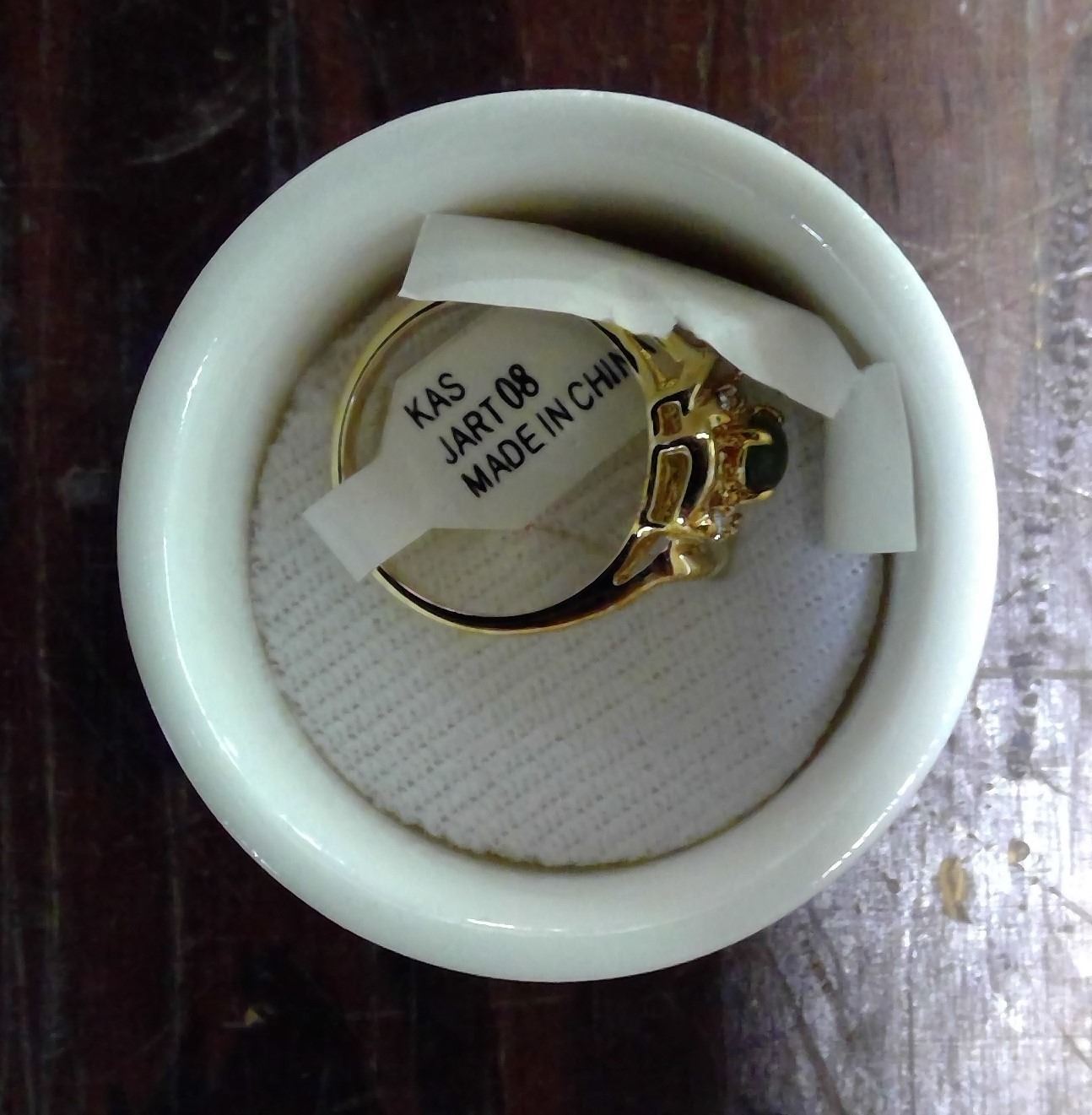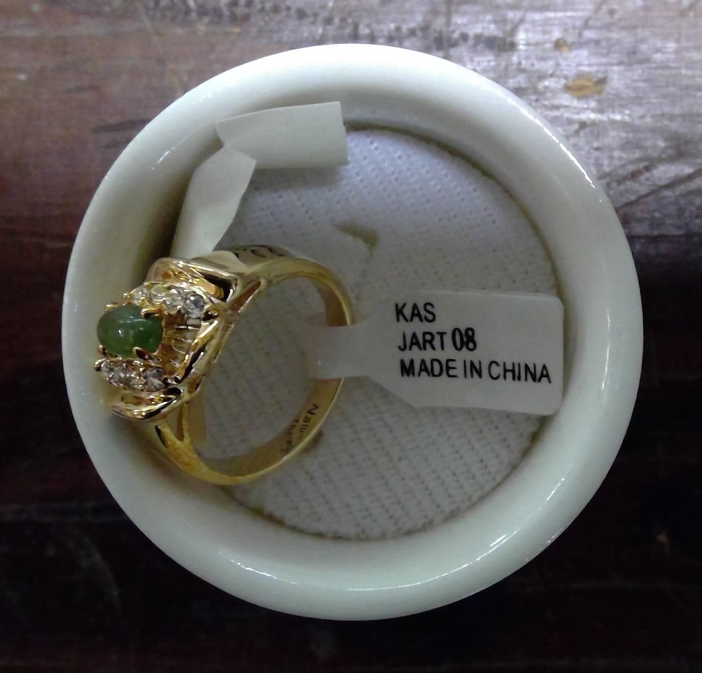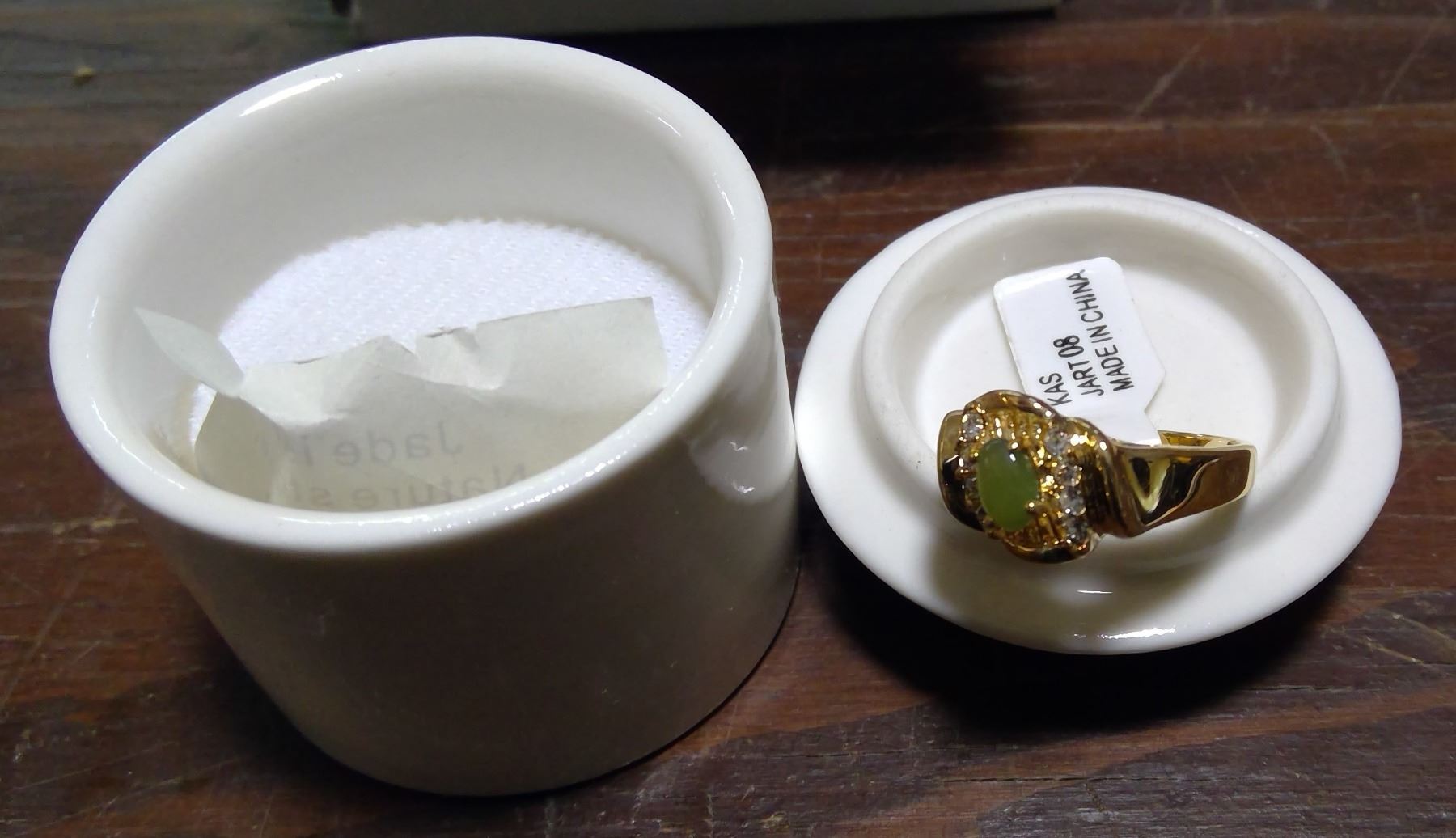 Genuine Jade Ring - Gold Plated sz.8 in Decorative Holder