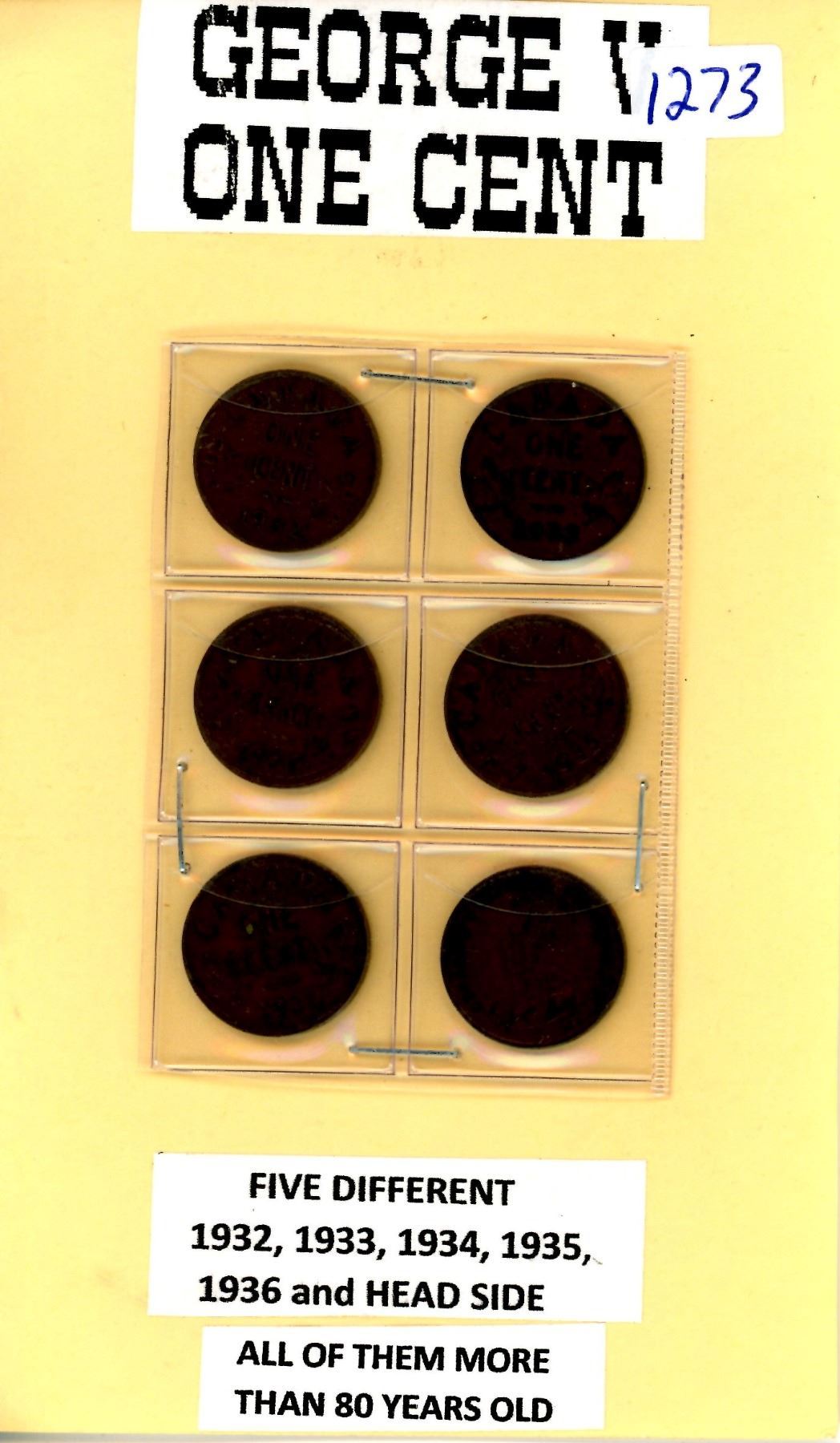 George V Once Cent Collection. 1932, 33, 34, 35, 36 And Head Side