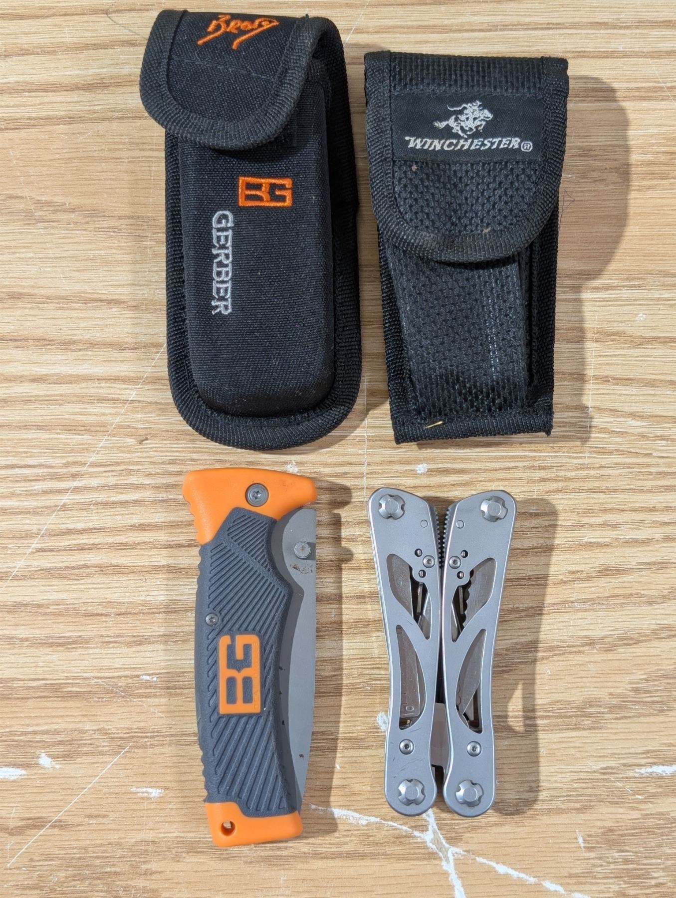 Gerber Skinning Knife 4" Blade w/ Winchester Multi Purpose Hunting Tool Both in Cases