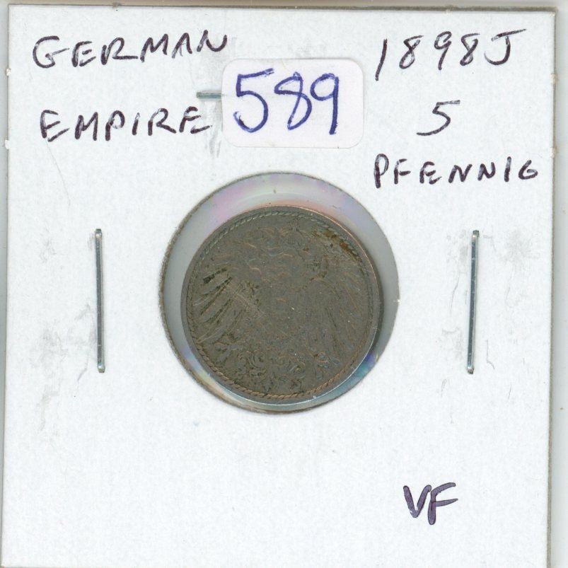 German Empire. 1898J 5 Pfennig. Hamburg Mint. VF-20.
