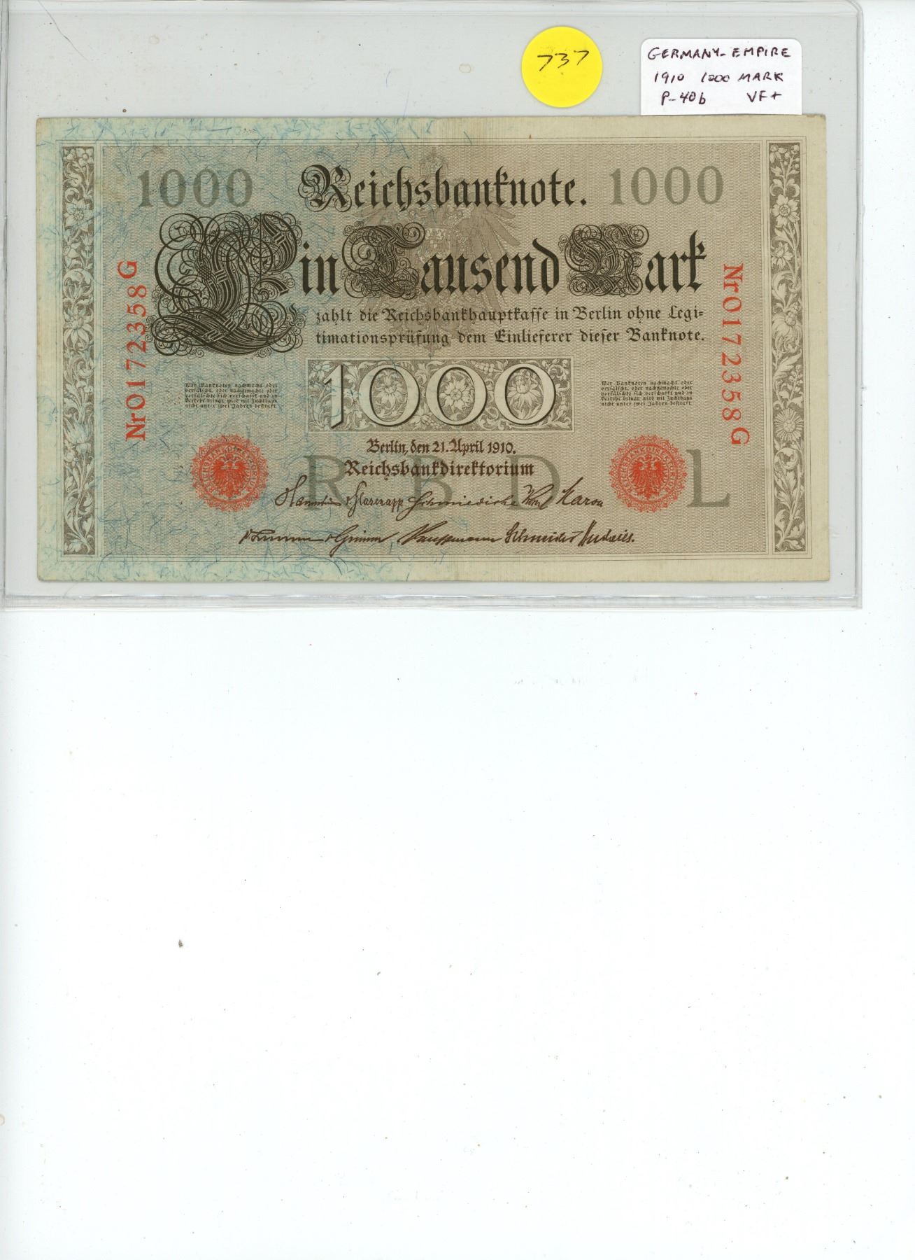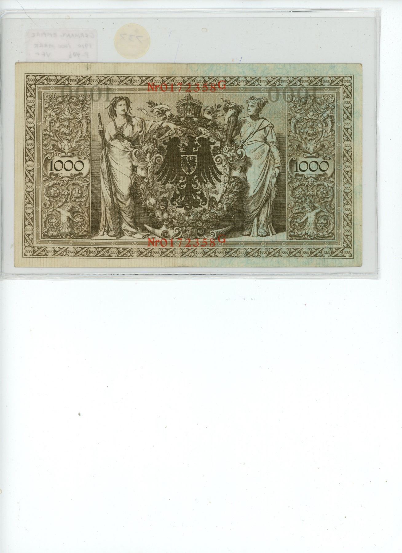 German Empire 1910 1000 Mark Reichsbanknote. P-40b. VF+.