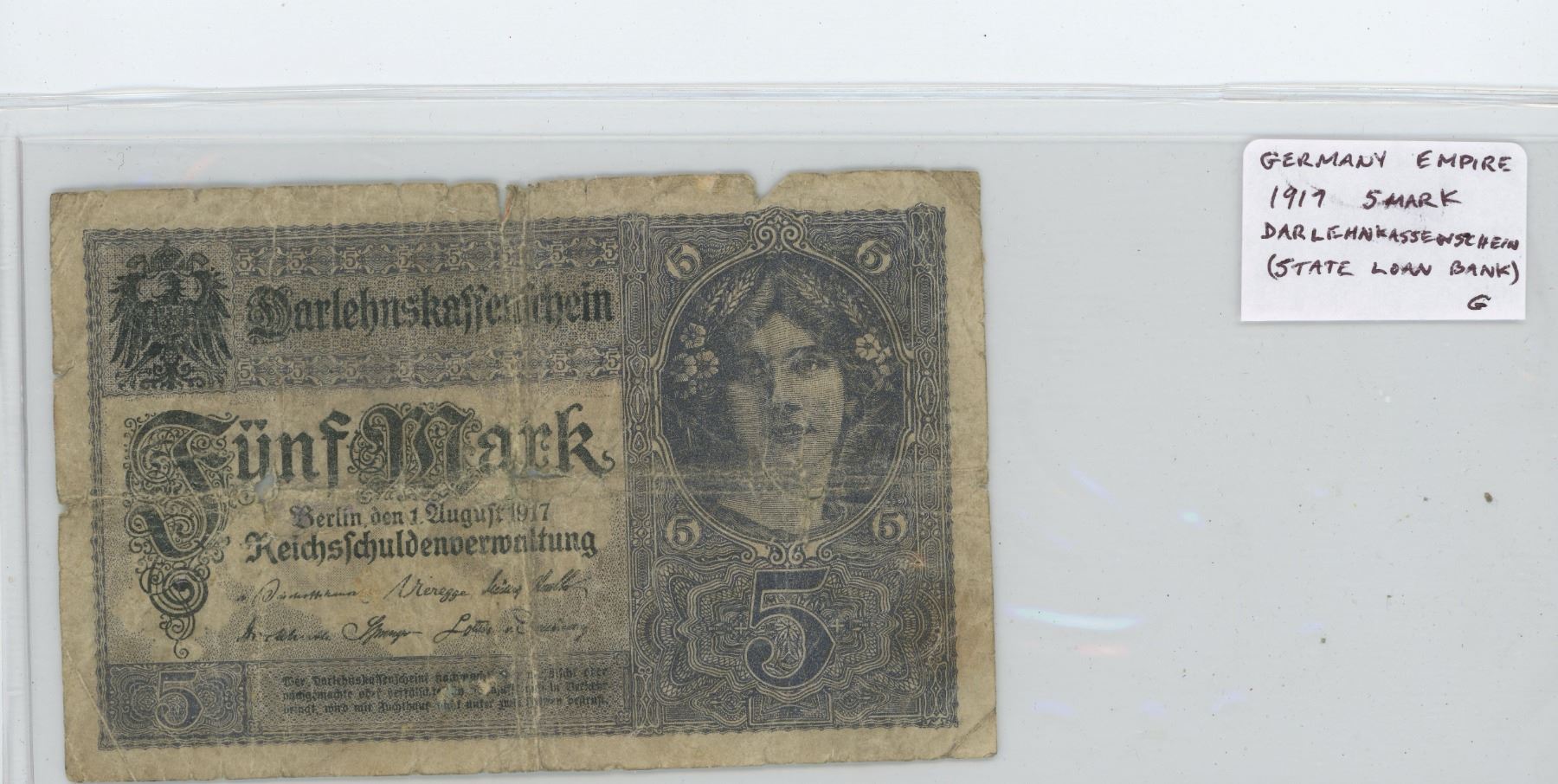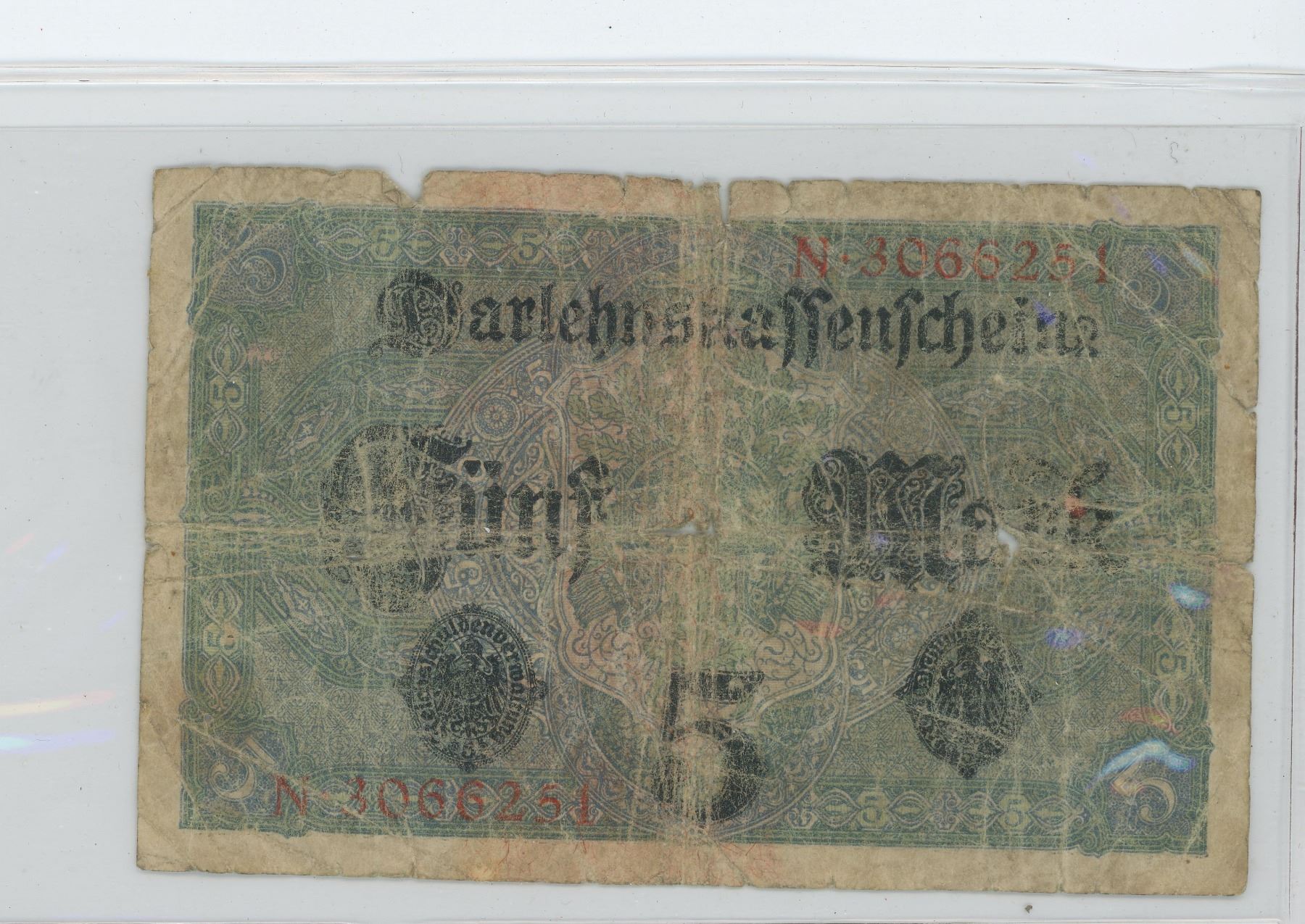 German Empire 1919 5 Mark Darlehnkassenschein (State Loan Bank). G.