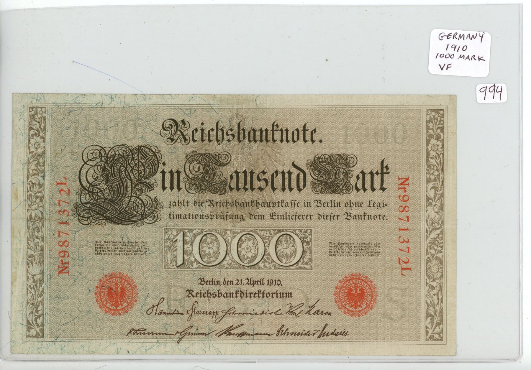 Germany. 1910 1000 Mark Reichsbanknote. A fortune in 1910. VF.
