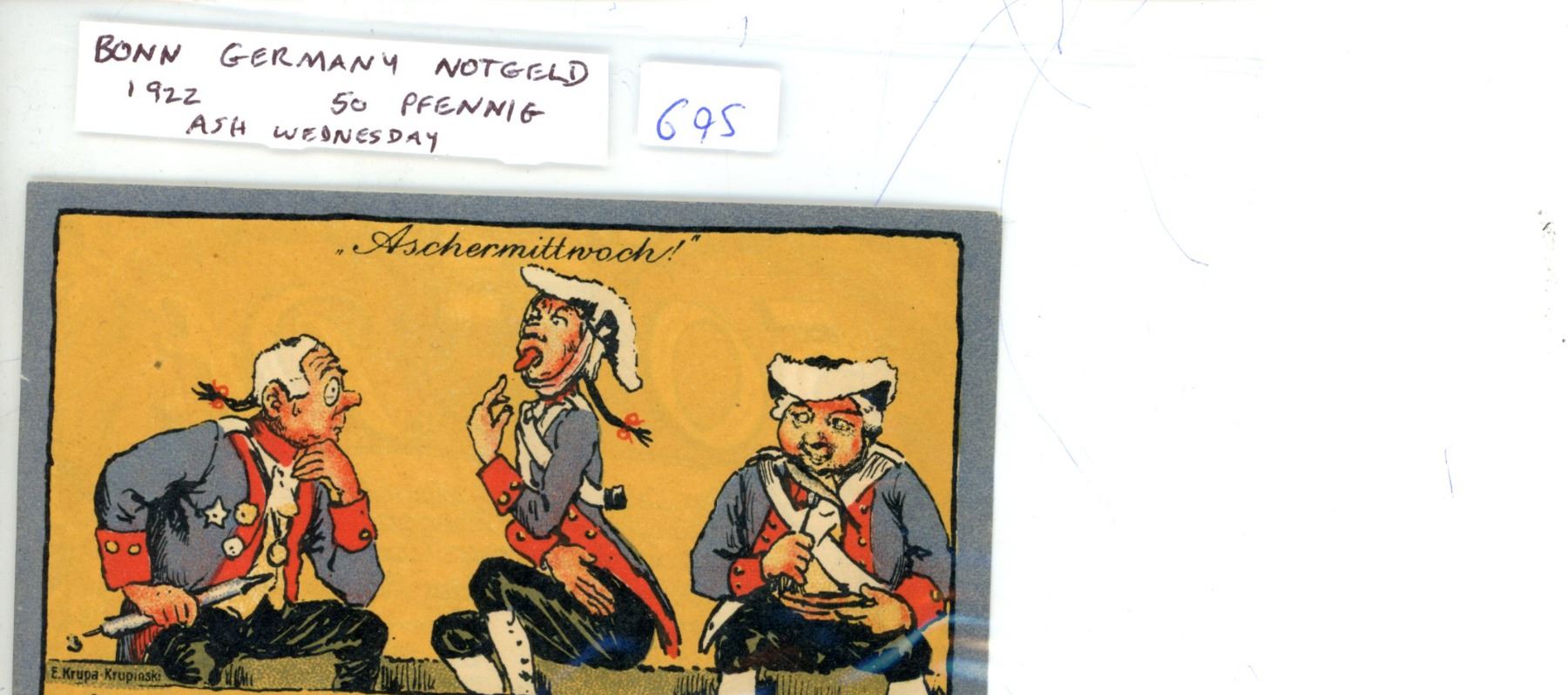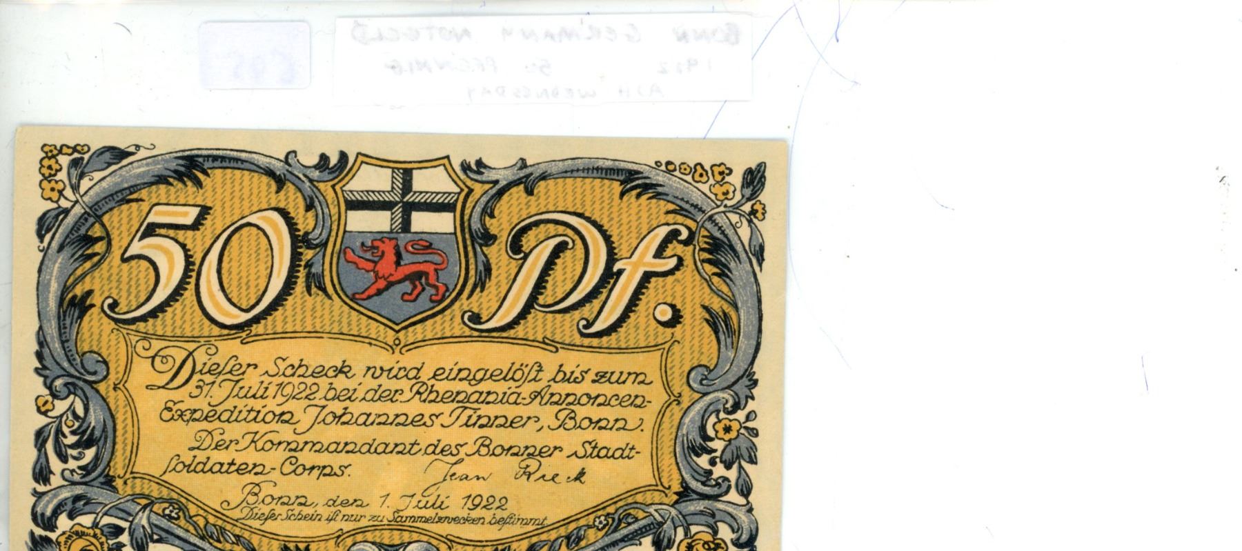 Germany. Bonn Notgeld. 1922 50 Pfennig. German troops complaining about Ash Wednesday. EF.