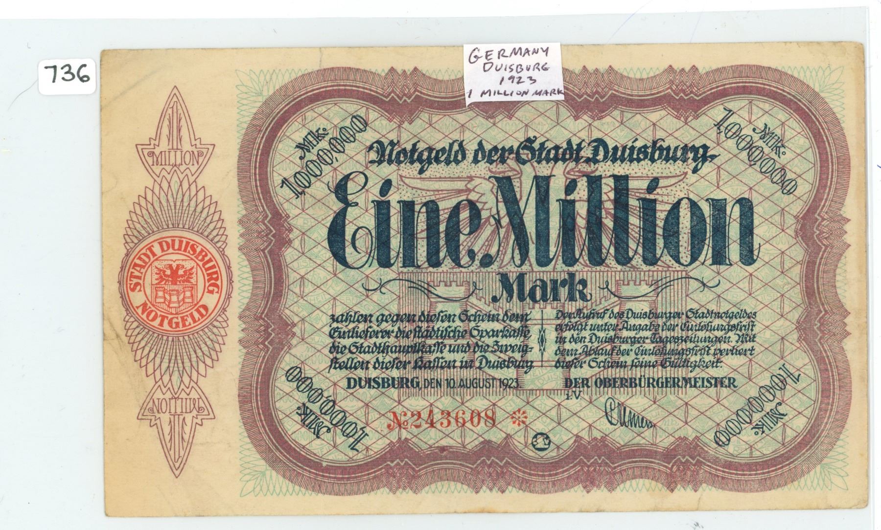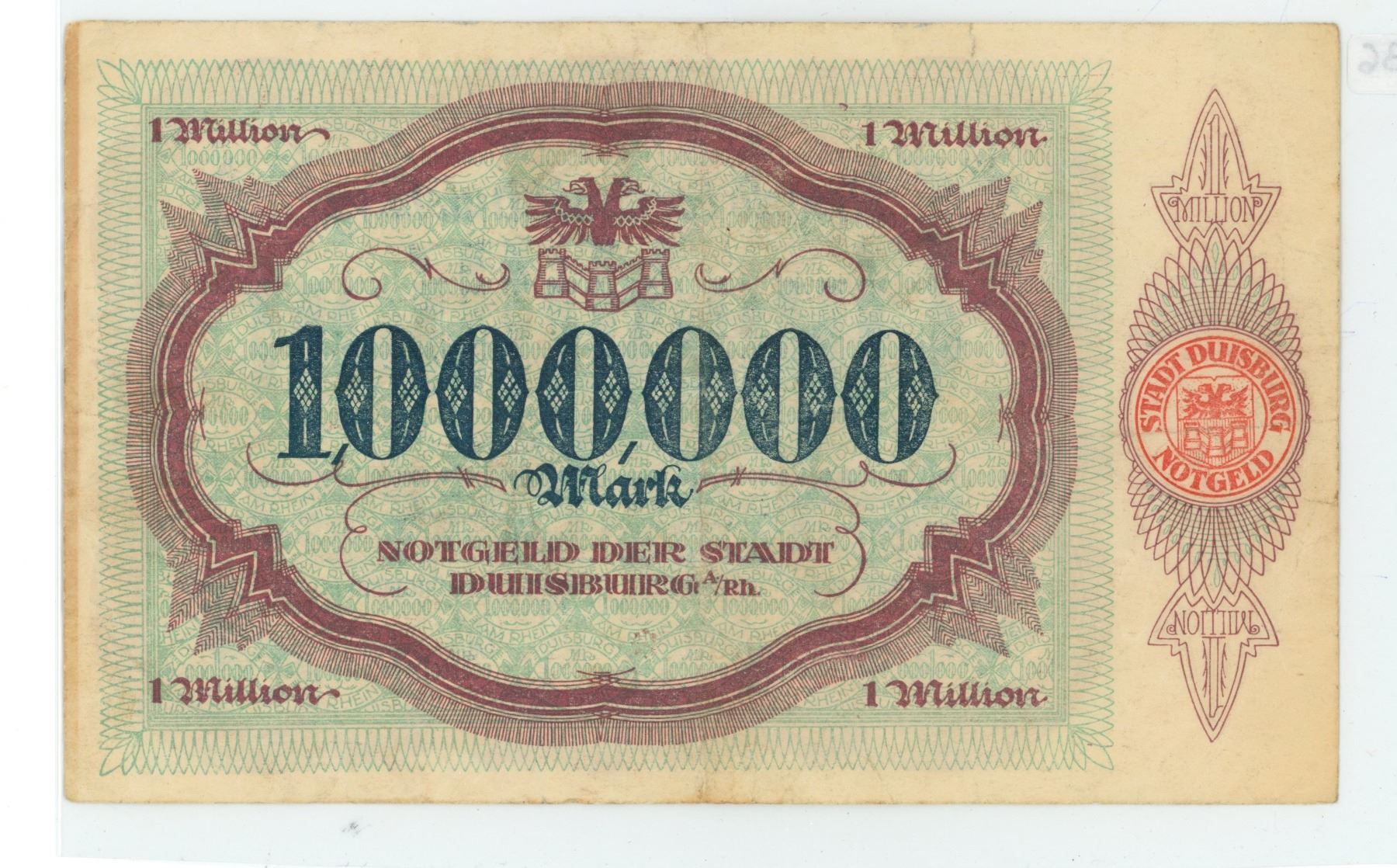 Germany. Duisburg 1923 Notgeld (Necessity Money) 1 Million Mark. VF+