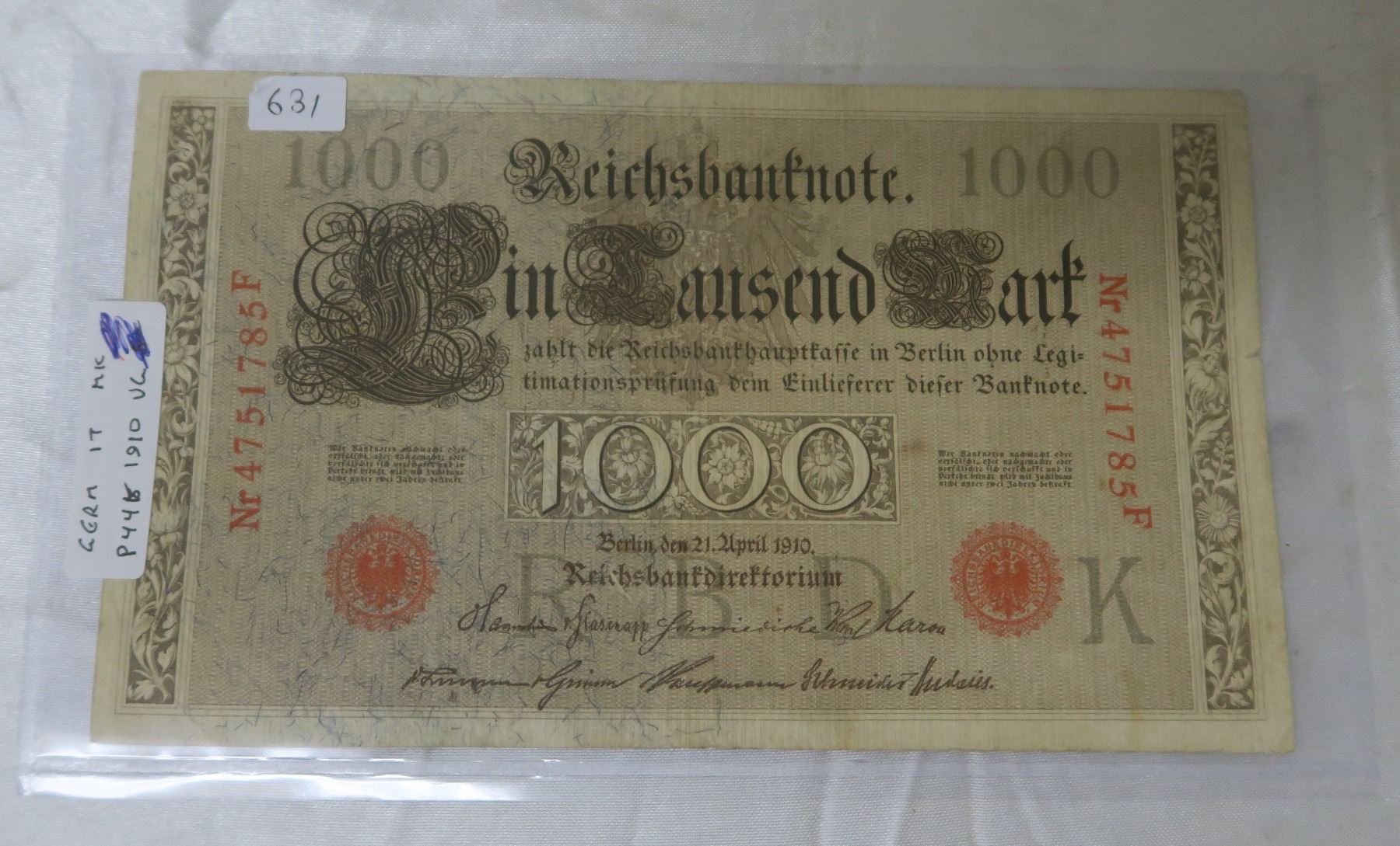 Germany - Empire. 1910 1000 Mark Reichsbanknote. A fortune in 1910. VG.