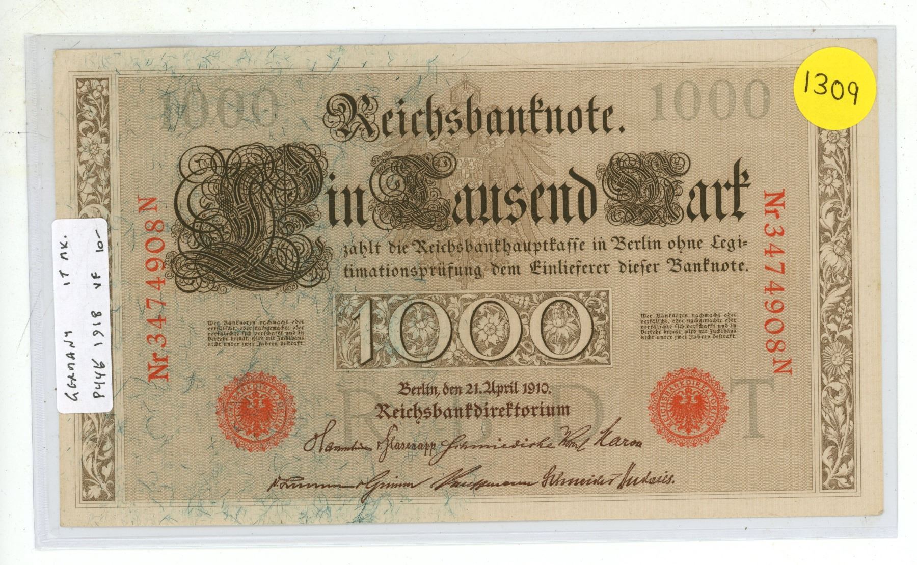 Germany – Empire. 1910 1000 Mark Reichsbanknote. Large Denomination. VF.