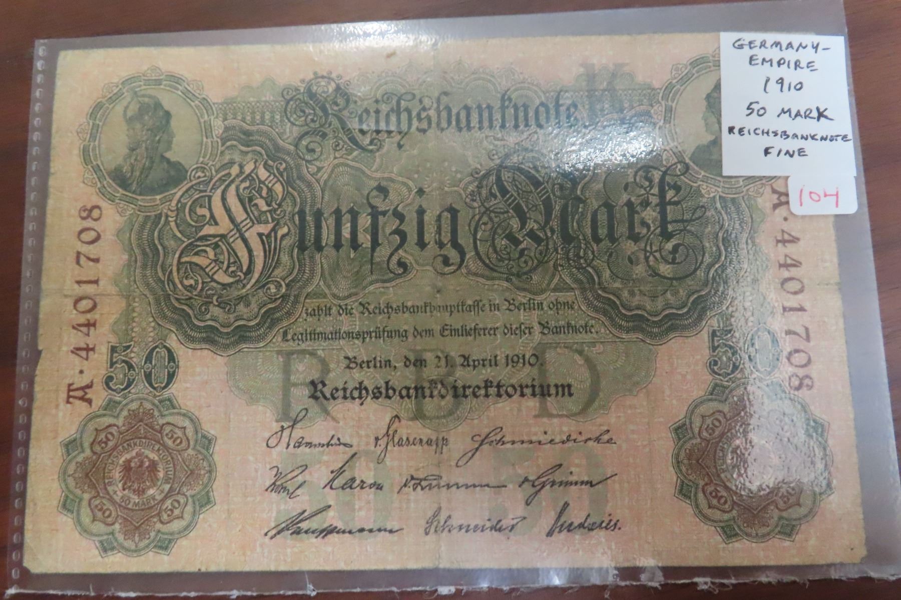 Germany – Empire. 1910 50 Mark Reichsbanknote. Fine.