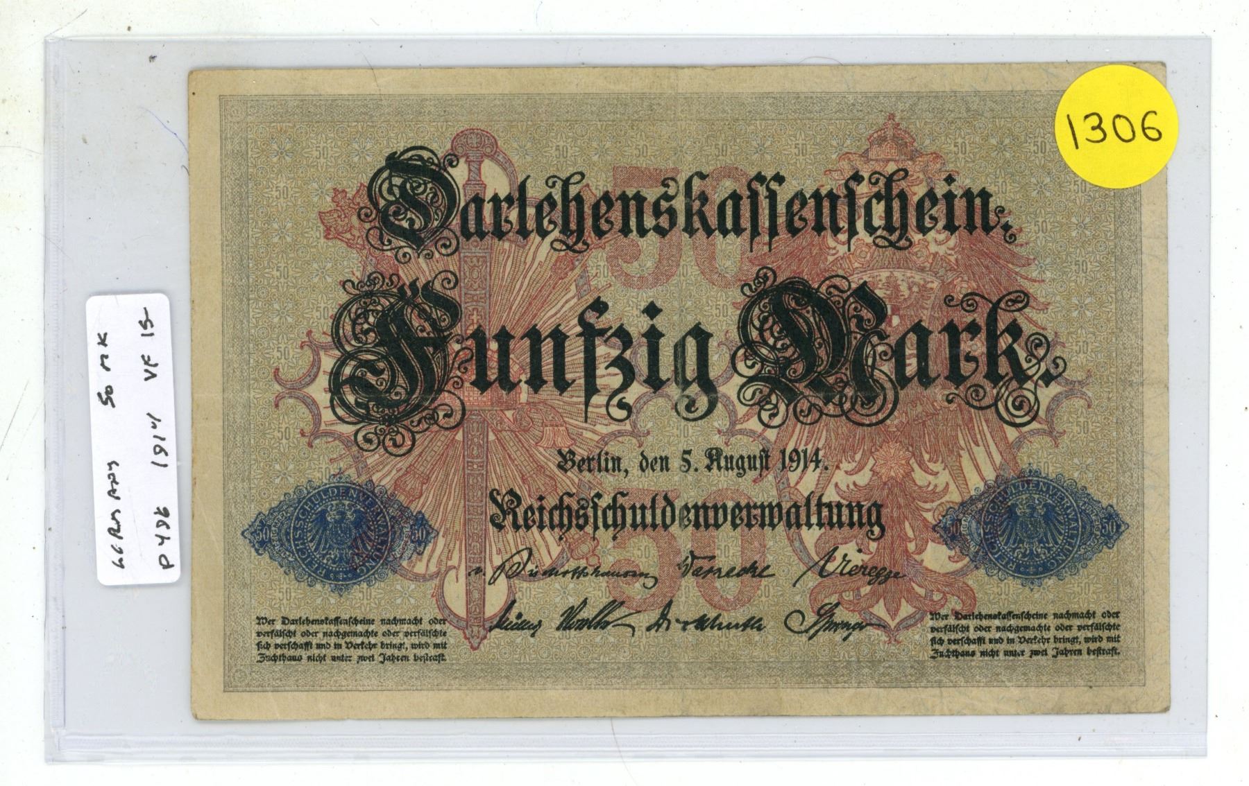 Germany – Empire. 1914 50 Mark Darlehenskassenschein. VF.