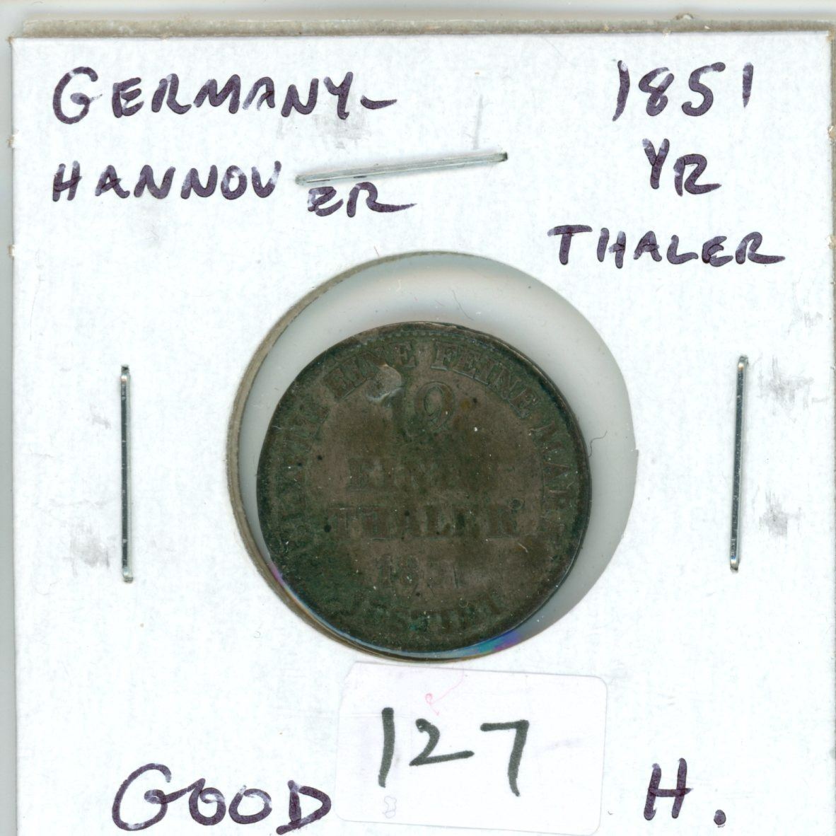 Germany. Hannover. 1851 1/12 Thaler. Good. Holed.