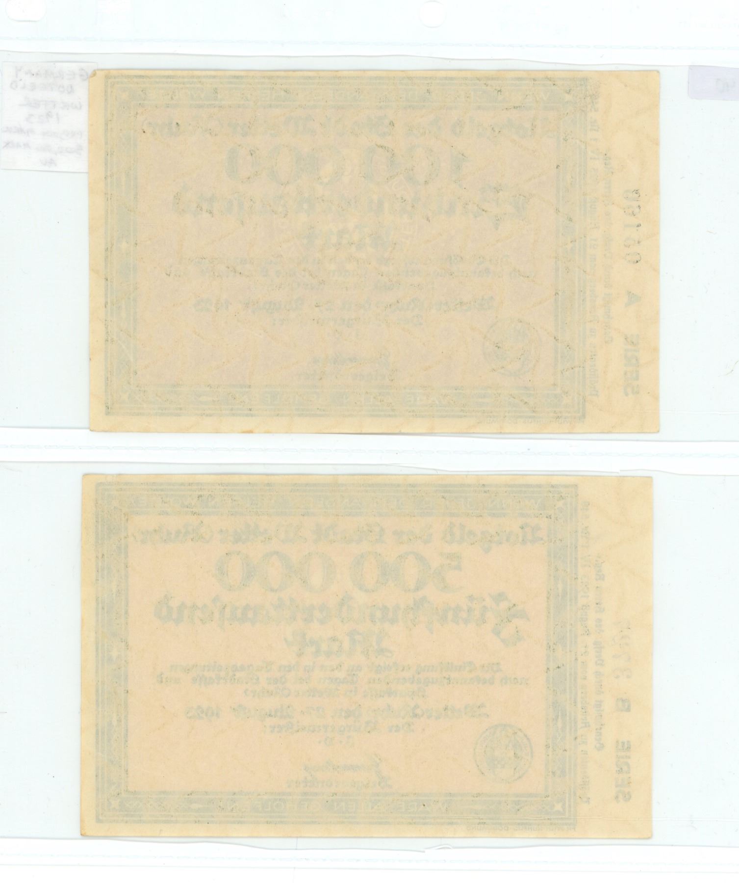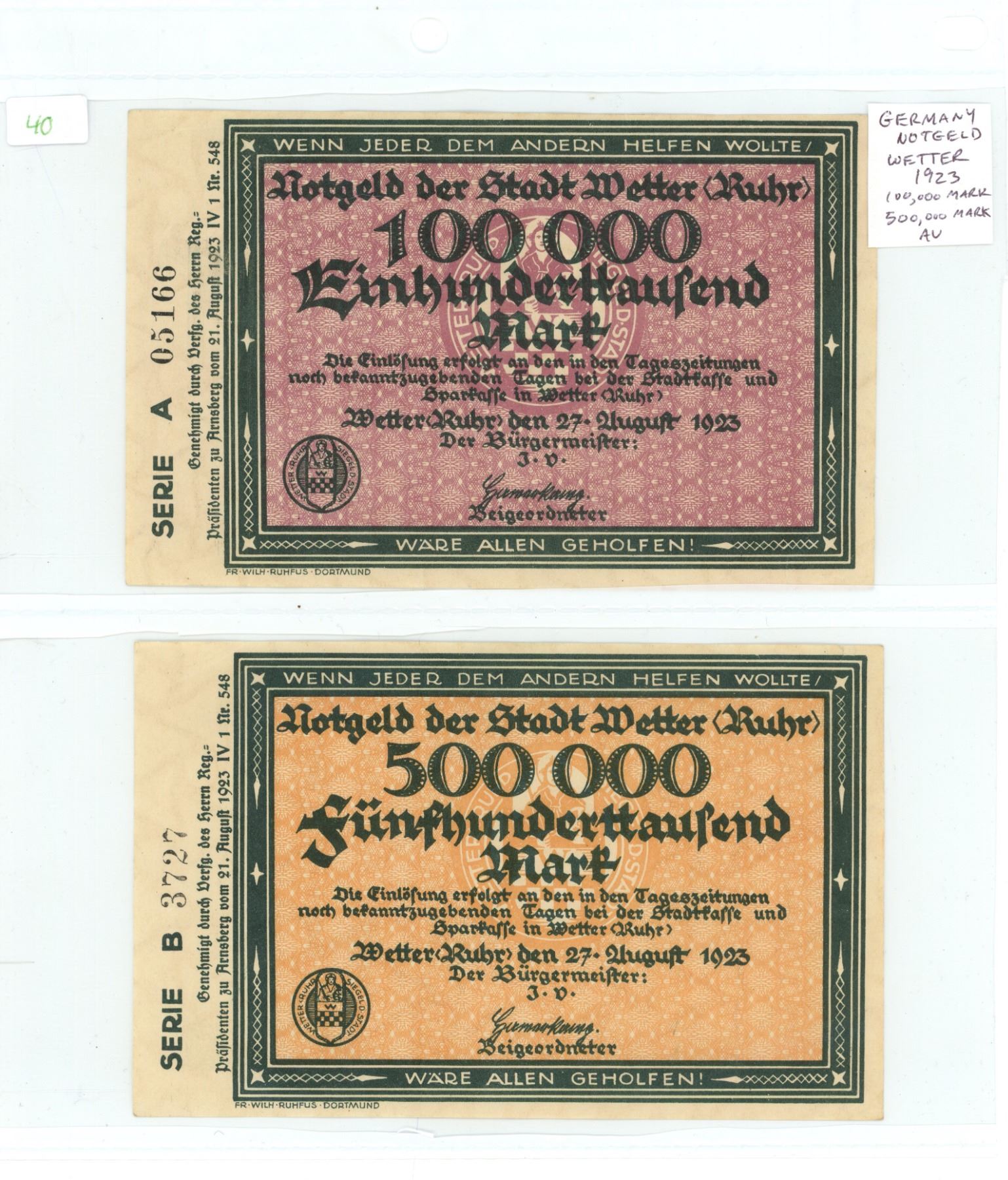 Germany. Lot of 2 Notgeld from the city of Wetter (Ruhr). 1923 100,000 Mark & 1923 500,000 Mark. AU.