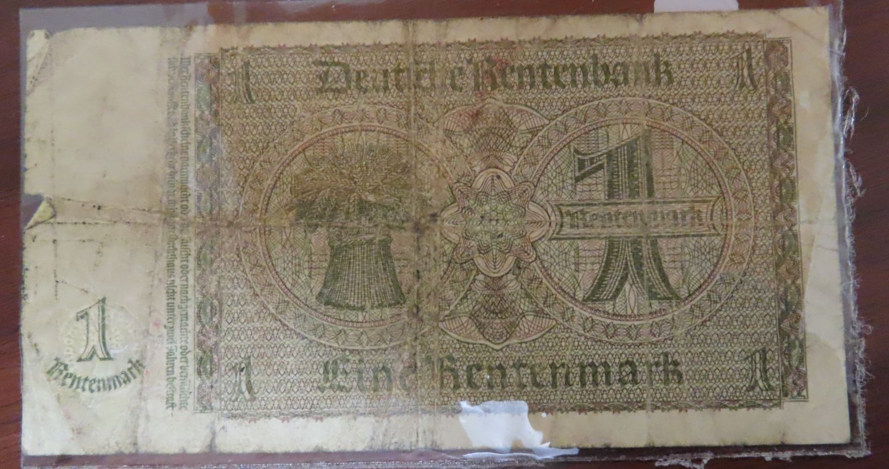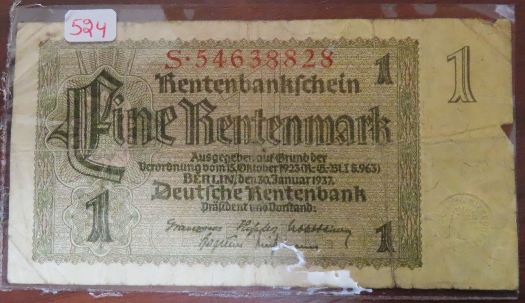 Germany – Nazi Third Reich. 1937 1 Rentenmark Rentenbankschein. VG.