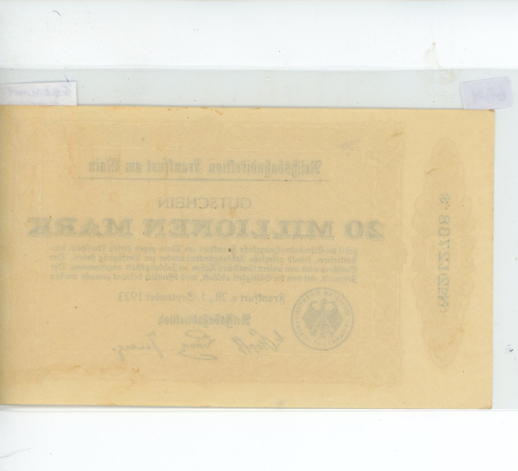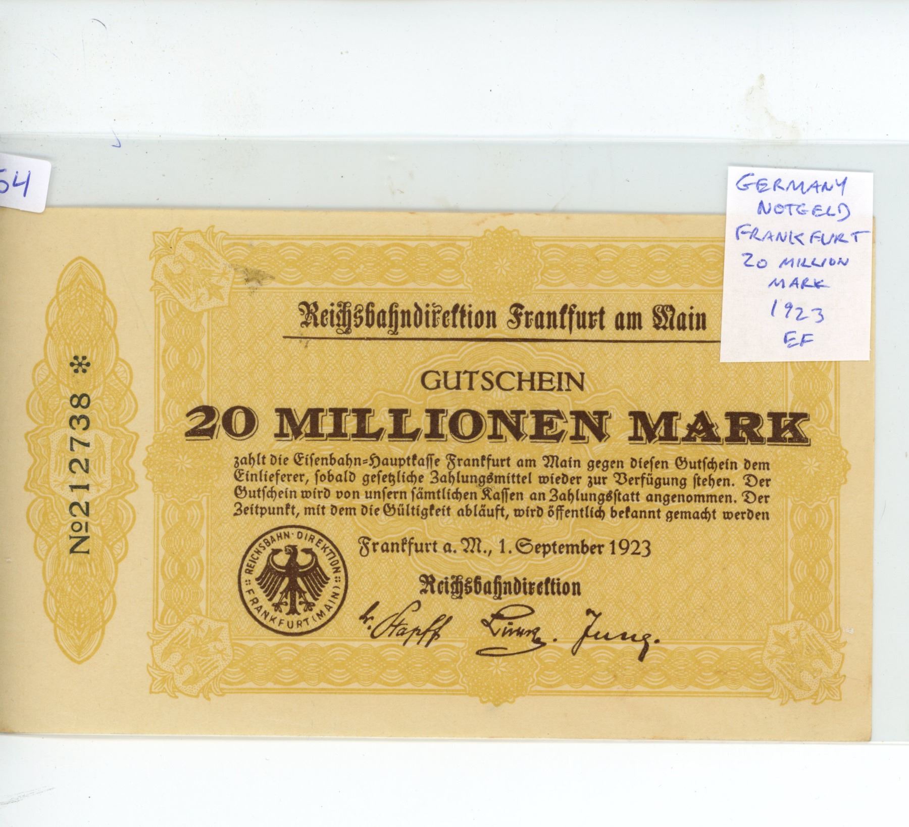 Germany – Notgeld (Necessity Money). Frankfurt am Main. 20 Million Mark. EF.