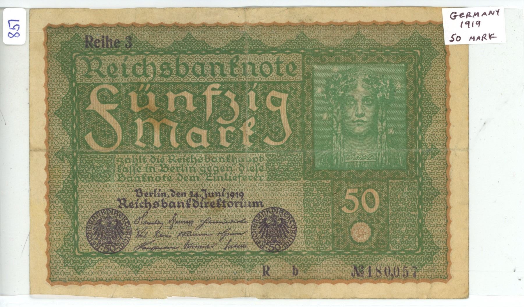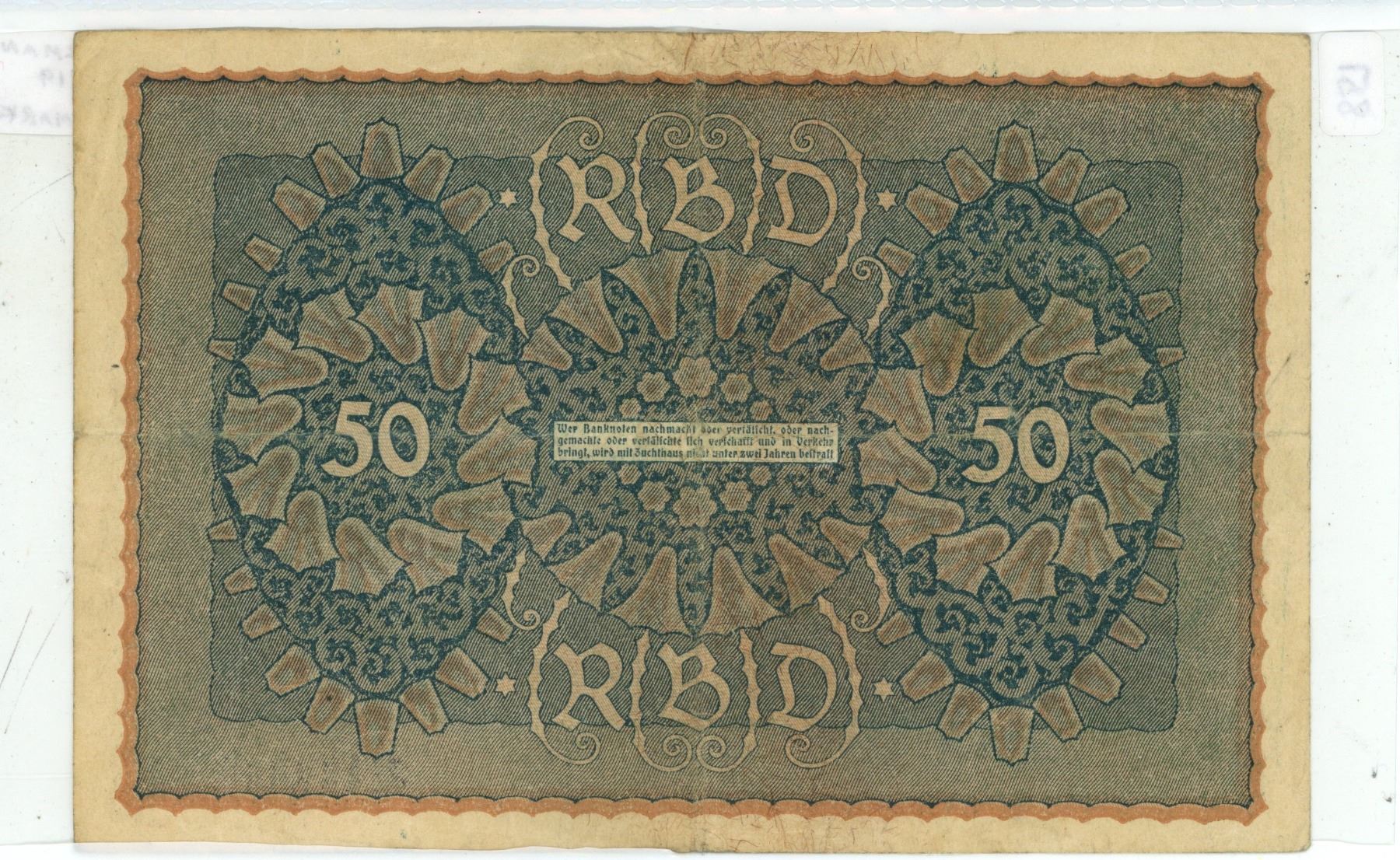 Germany – Weimar Republic. 1919 50 Mark Reichsbanknote. F+.