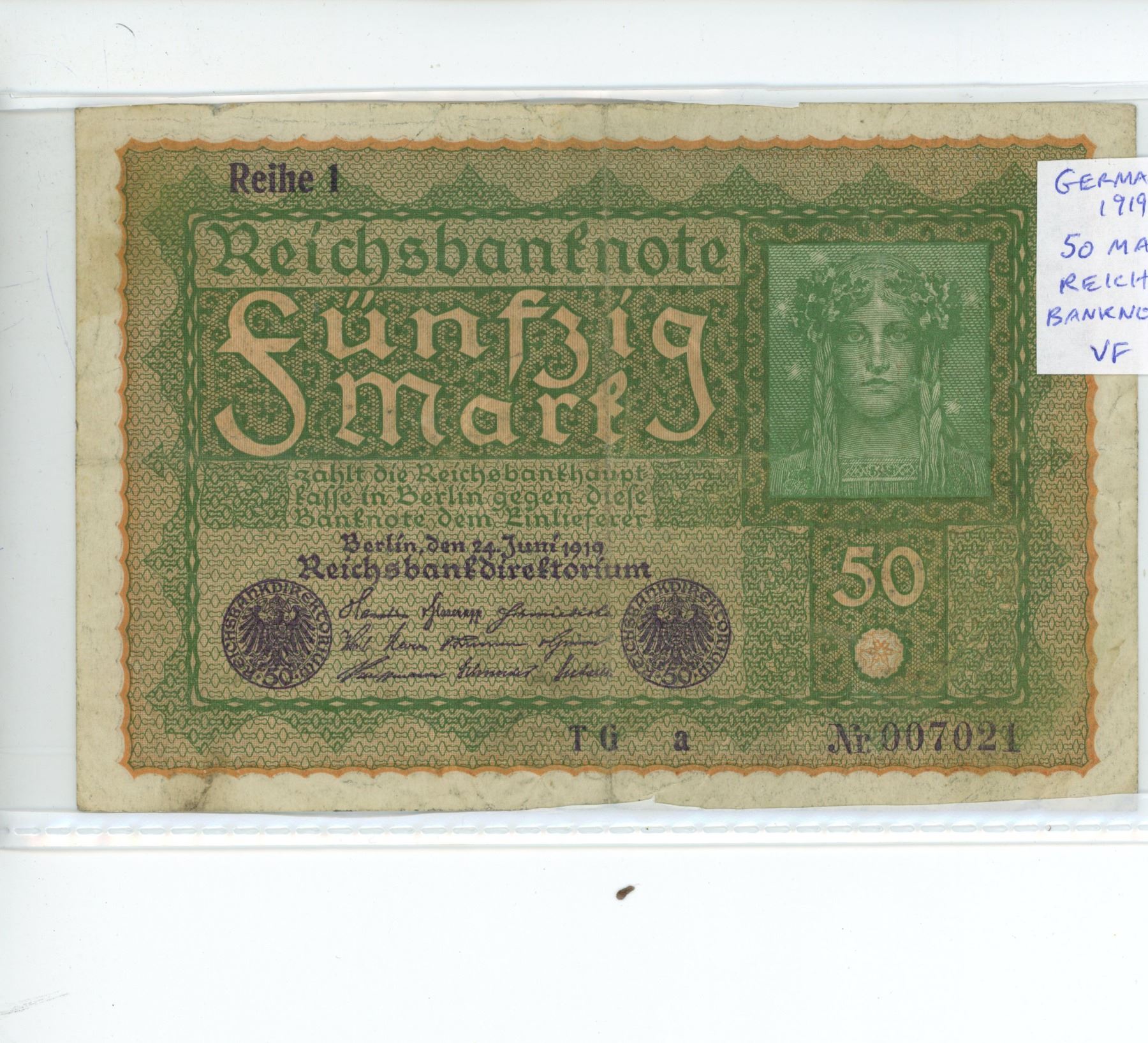 Germany - Weimar Republic. 1919 50 Mark Reichsbanknote. VF.