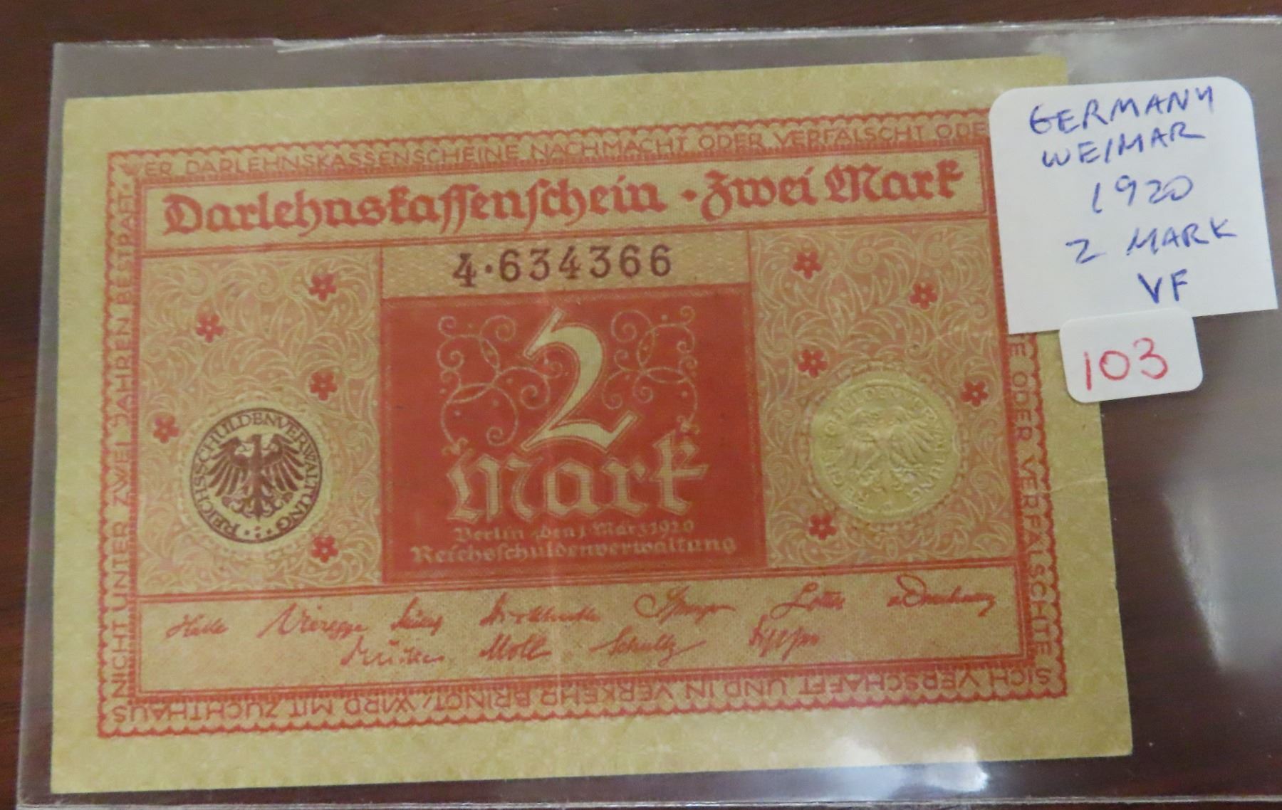 Germany – Weimar Republic. 1920 2 Mark Darlehnskassenschein (State Loan Currency Note). VF.