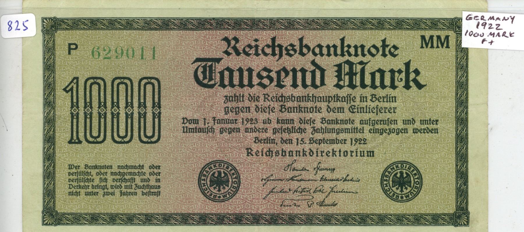 Germany – Weimar Republic. 1922 100 Mark Reichsbanknote. F+.