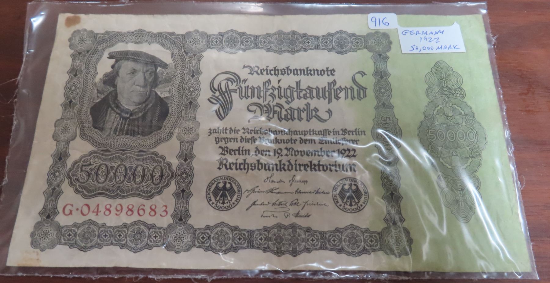 Germany – Weimar Republic. 1922 50,000 Mark Reich banknote. F.