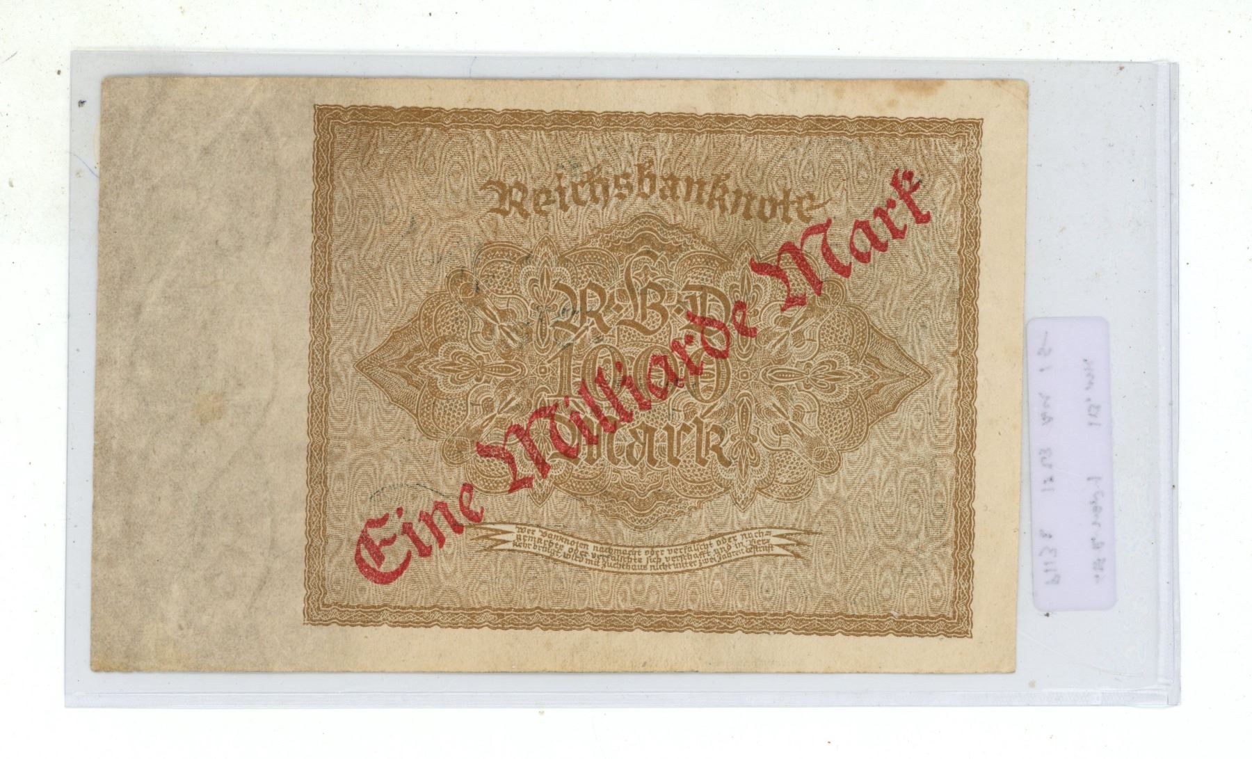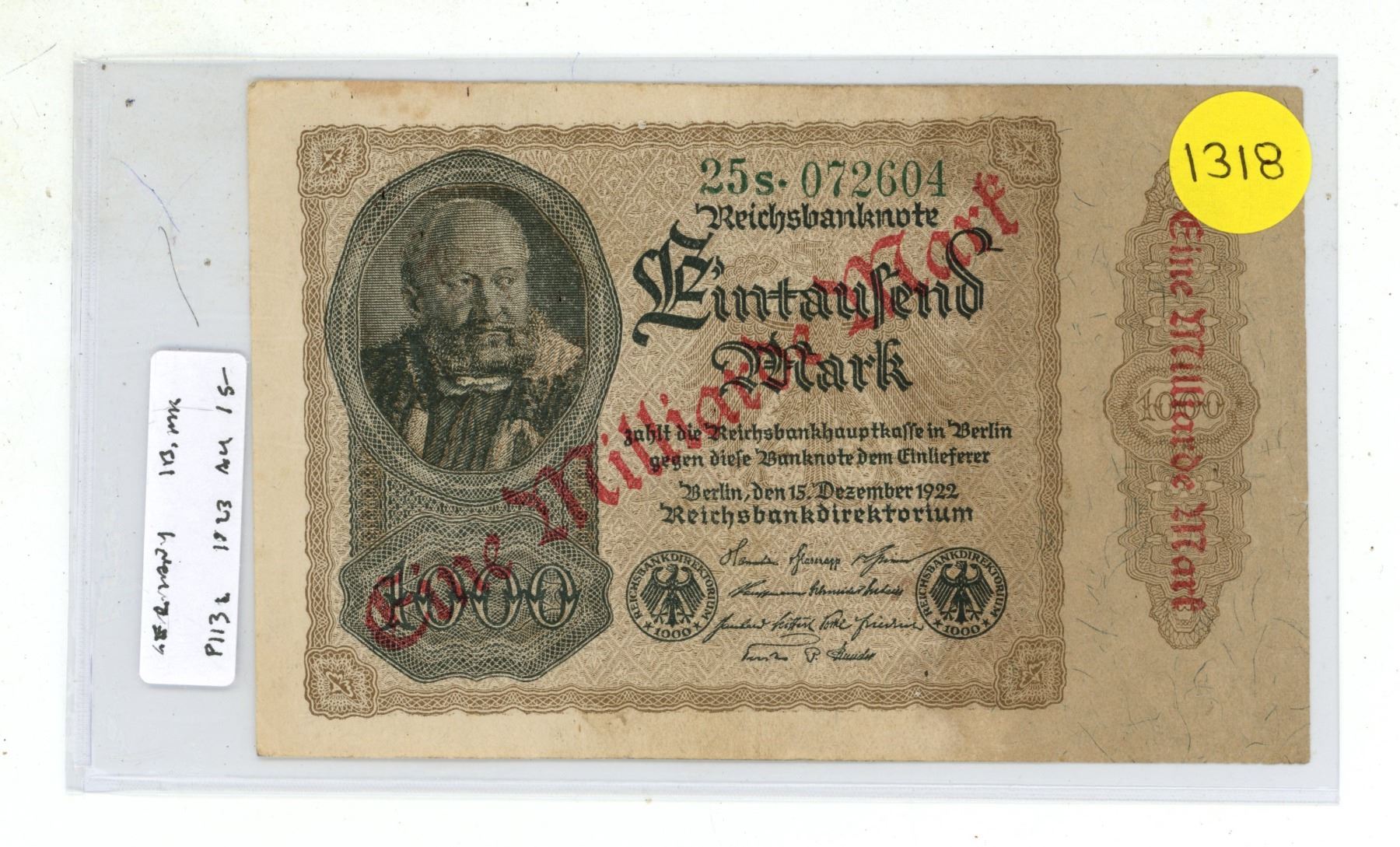 Germany – Weimar Republic. 1923 1 Milliarde (Billion) Mark Overprint on 1000 Mark. AU.