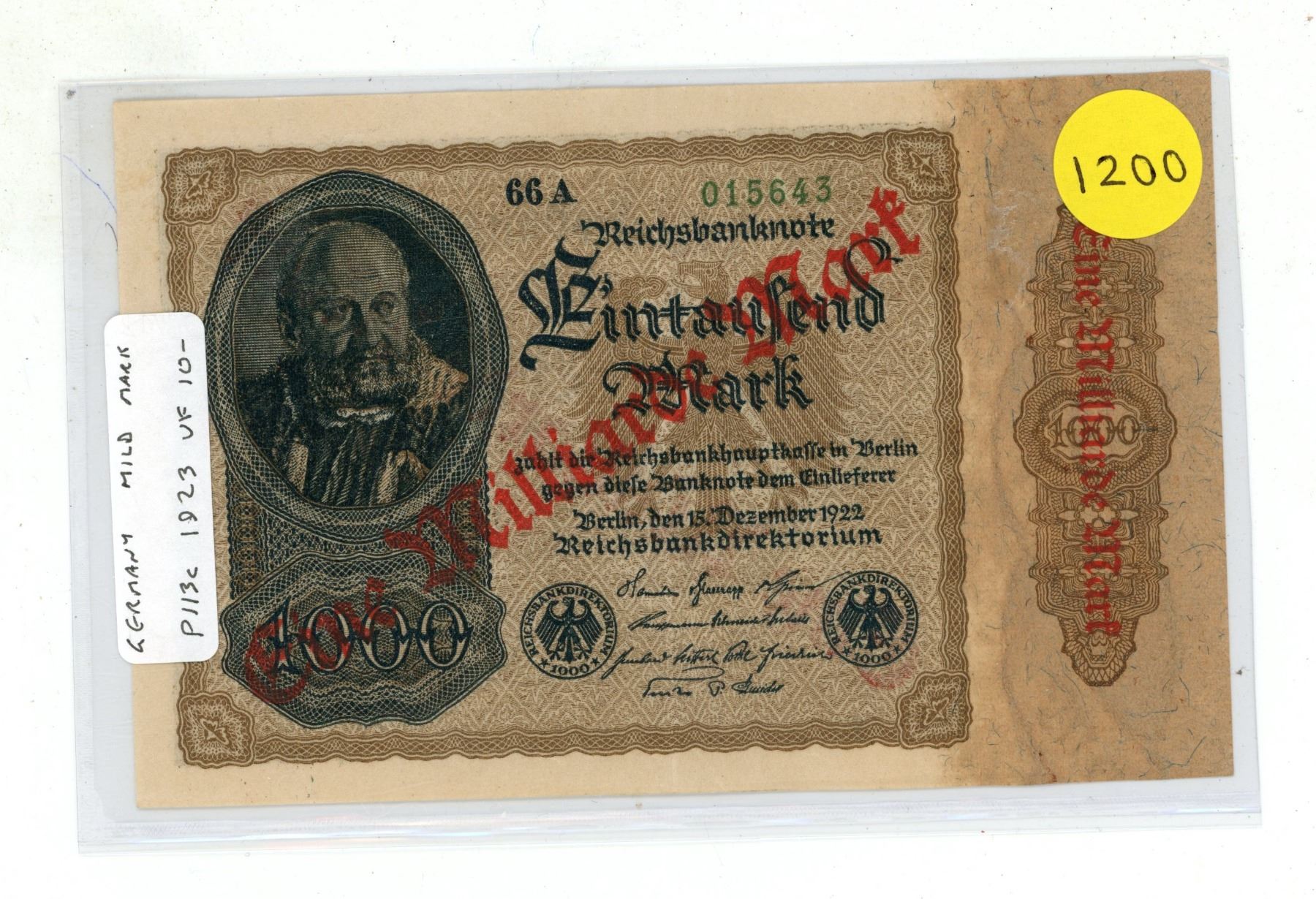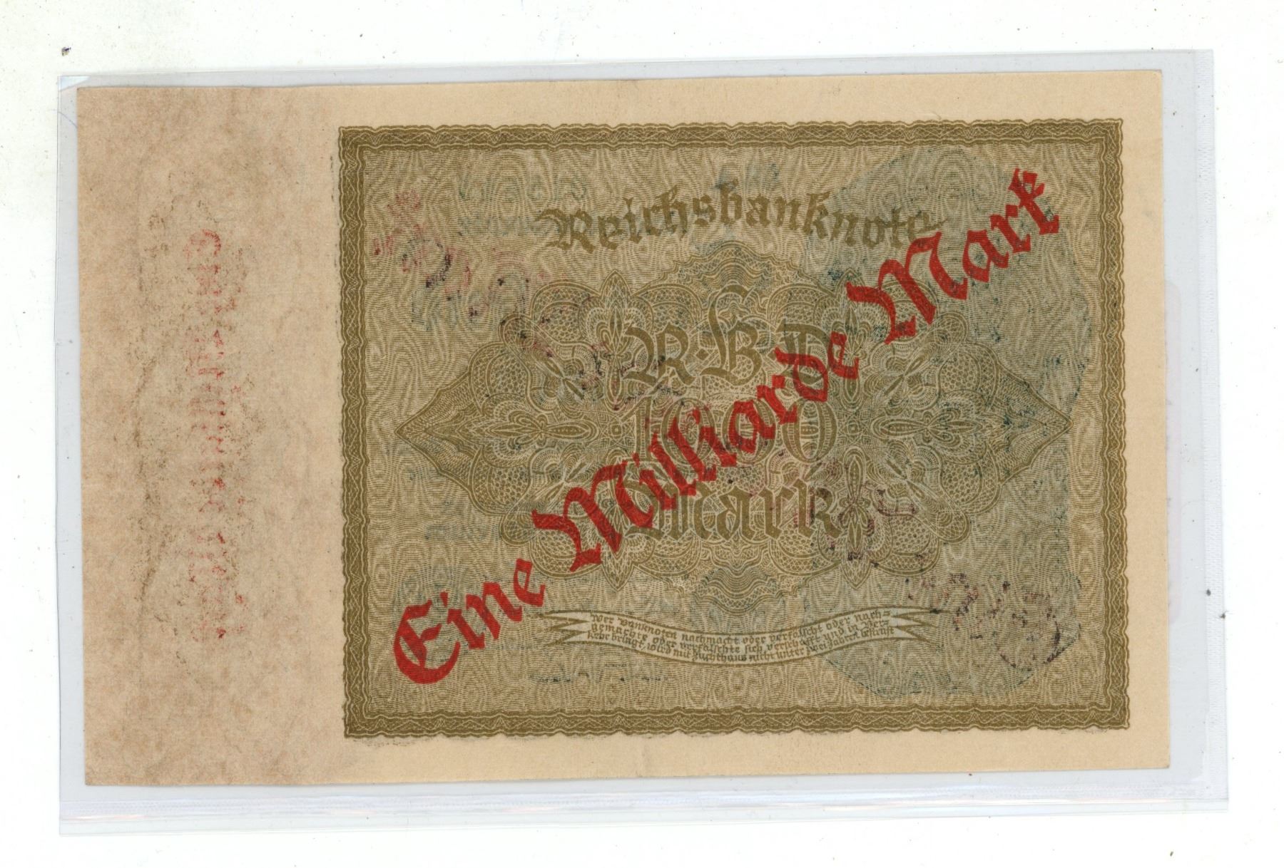 Germany – Weimar Republic. 1923 1 milliarde (Billion) Mark. Overprint on 1000 Mark. VF.