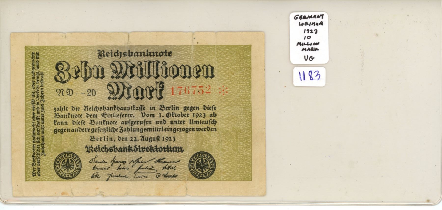 Germany. Weimar Republic. 1923 10 Million Mark. Inflationary Money. VG.
