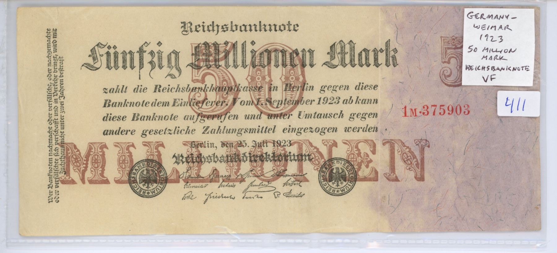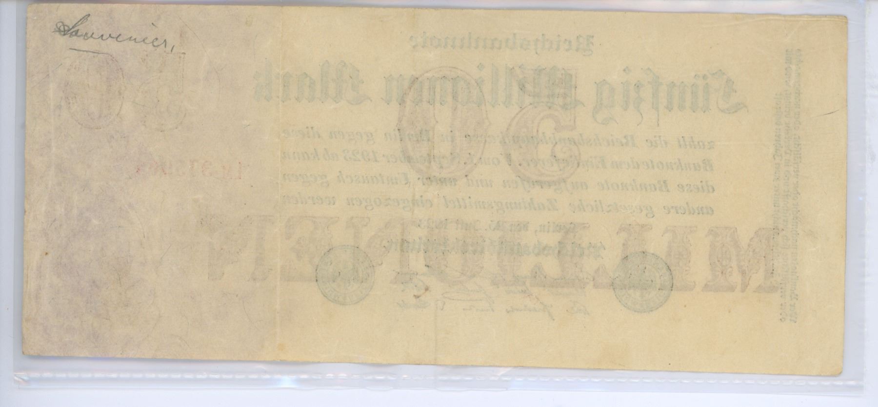 Germany – Weimar Republic. 1923 50 Million Mark Reichsbanknote. VF.