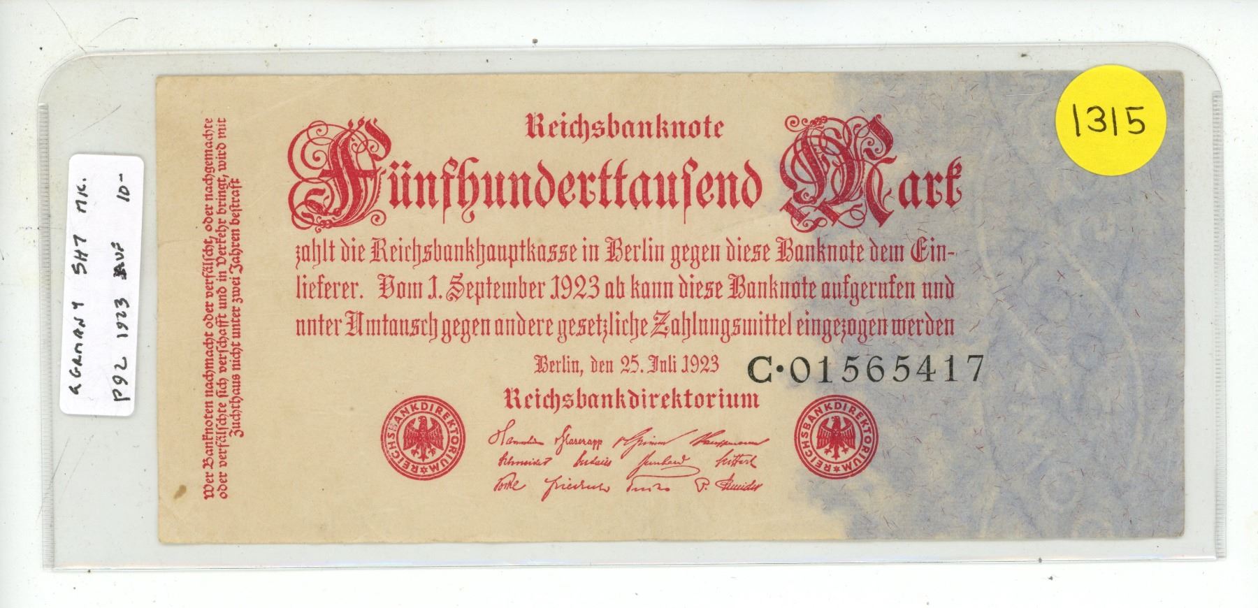 Germany – Weimar Republic. 1923 500,000 Mark. VF.