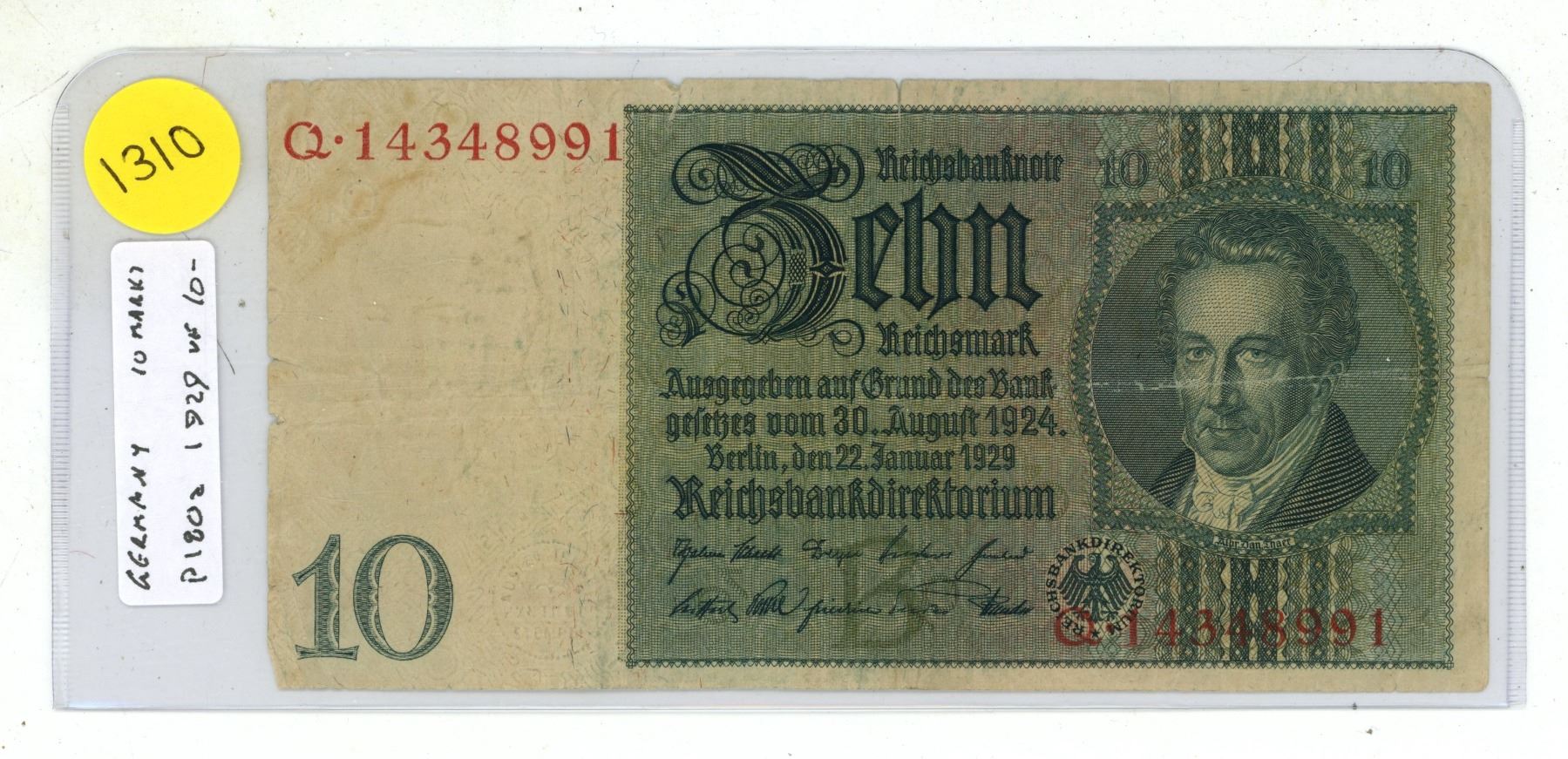 Germany – Weimar Republic. 1929 10 Mark. VF.