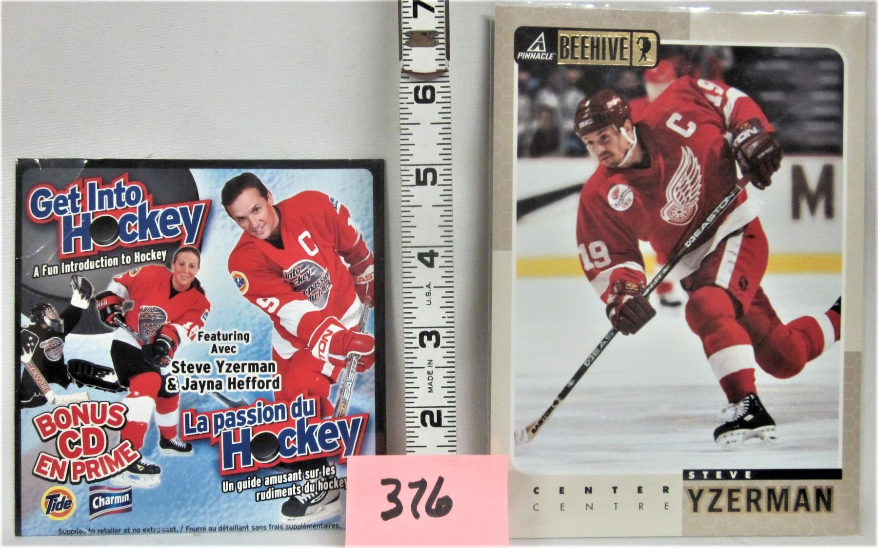 Giant 7"*5" 1998 pinnacle beehive Steve Yzerman hockey card and mini Detroit hockey jersey+ bonus CD rom