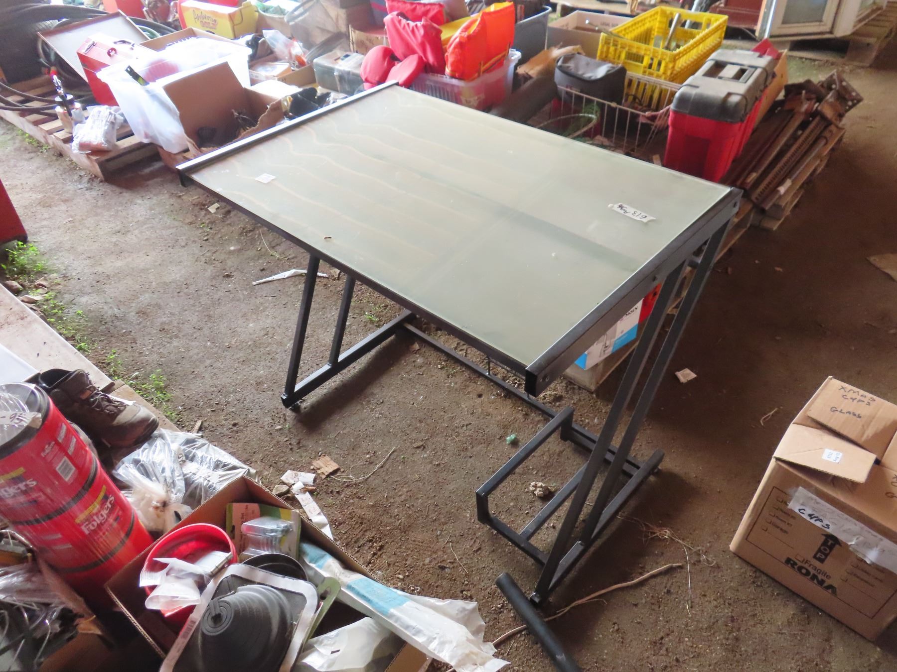 Glass Desk (30" tall, 35.5" long, 22.75" wide)