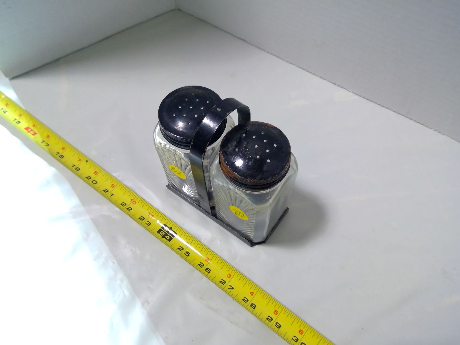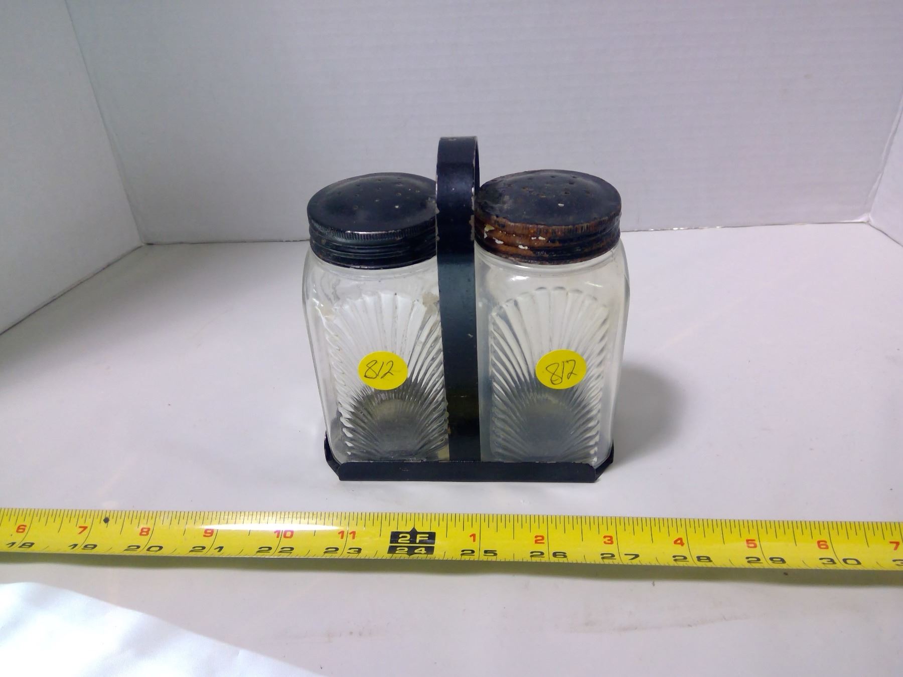 Glass Salt & Pepper Shaker Set w/ Holder