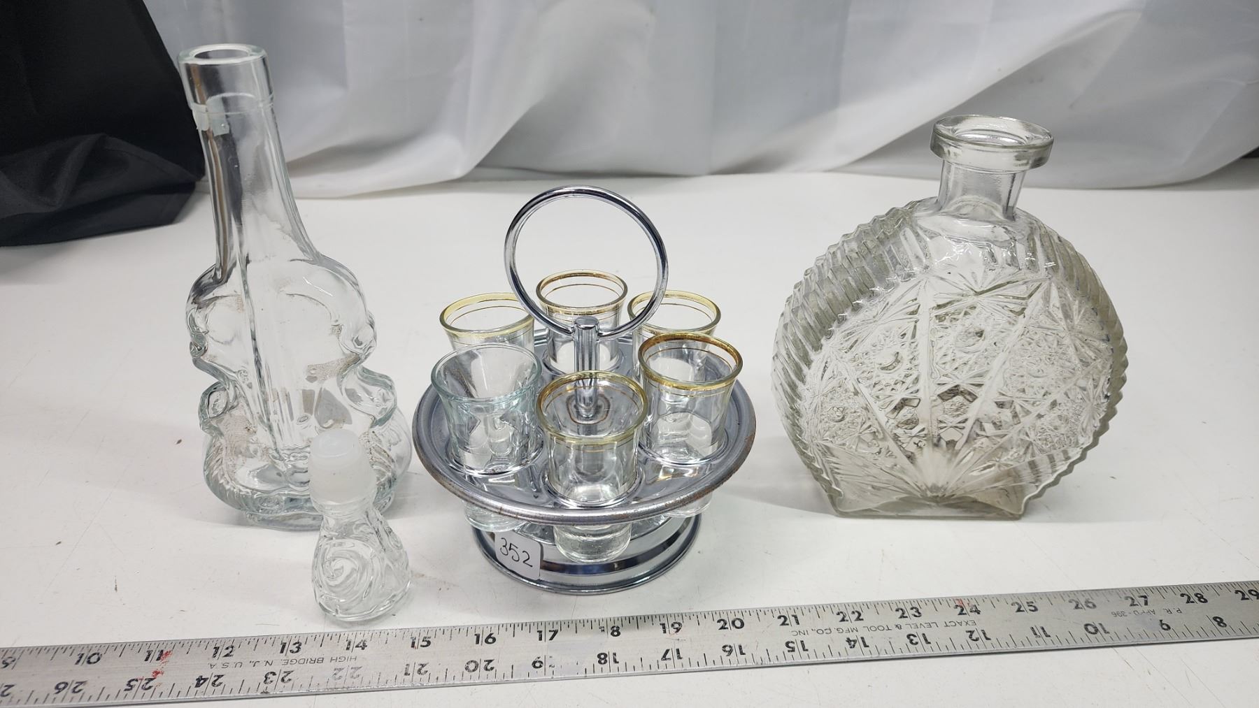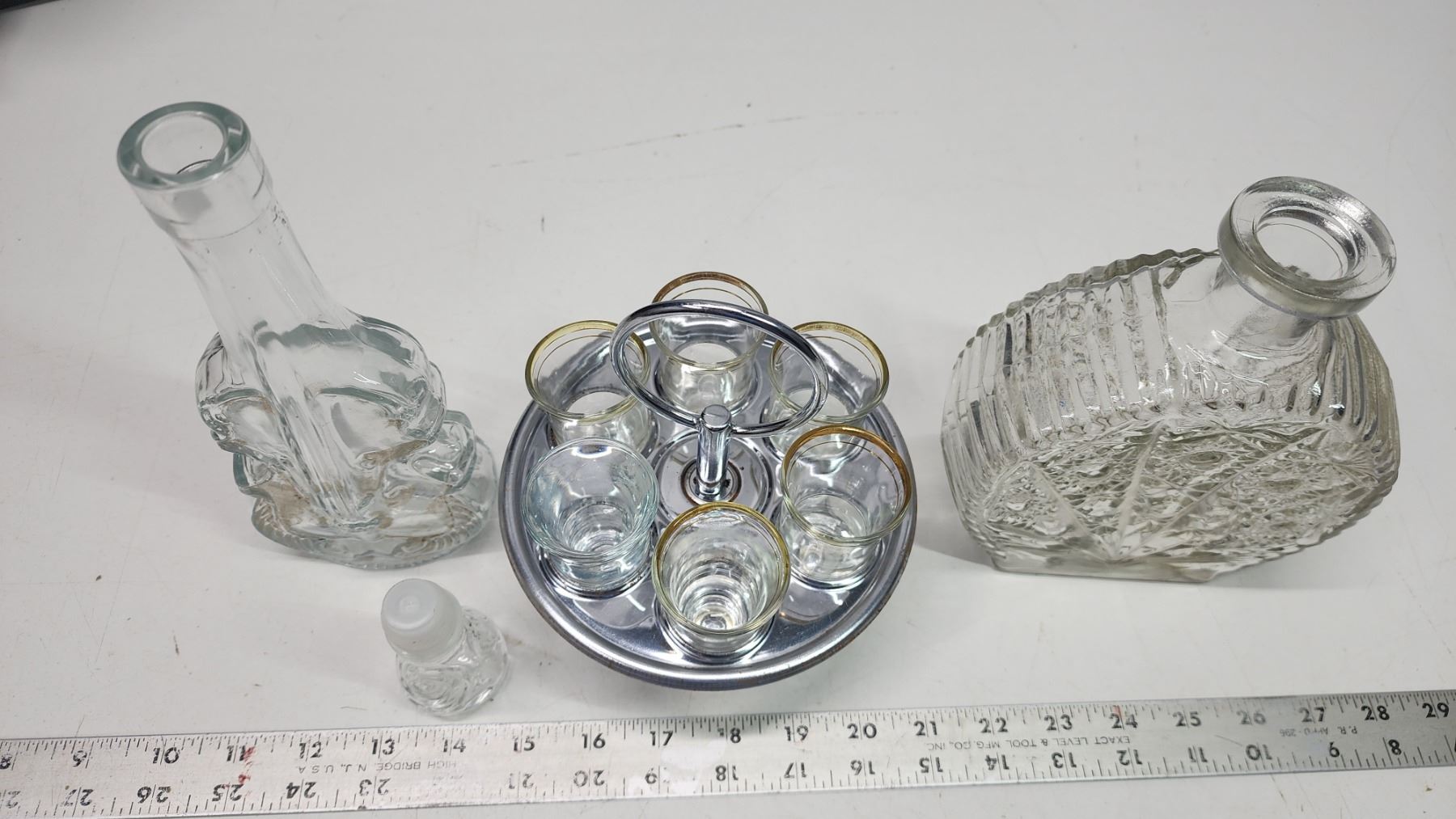 Glass Whiskey Decanters + Shot Glasses with Stand