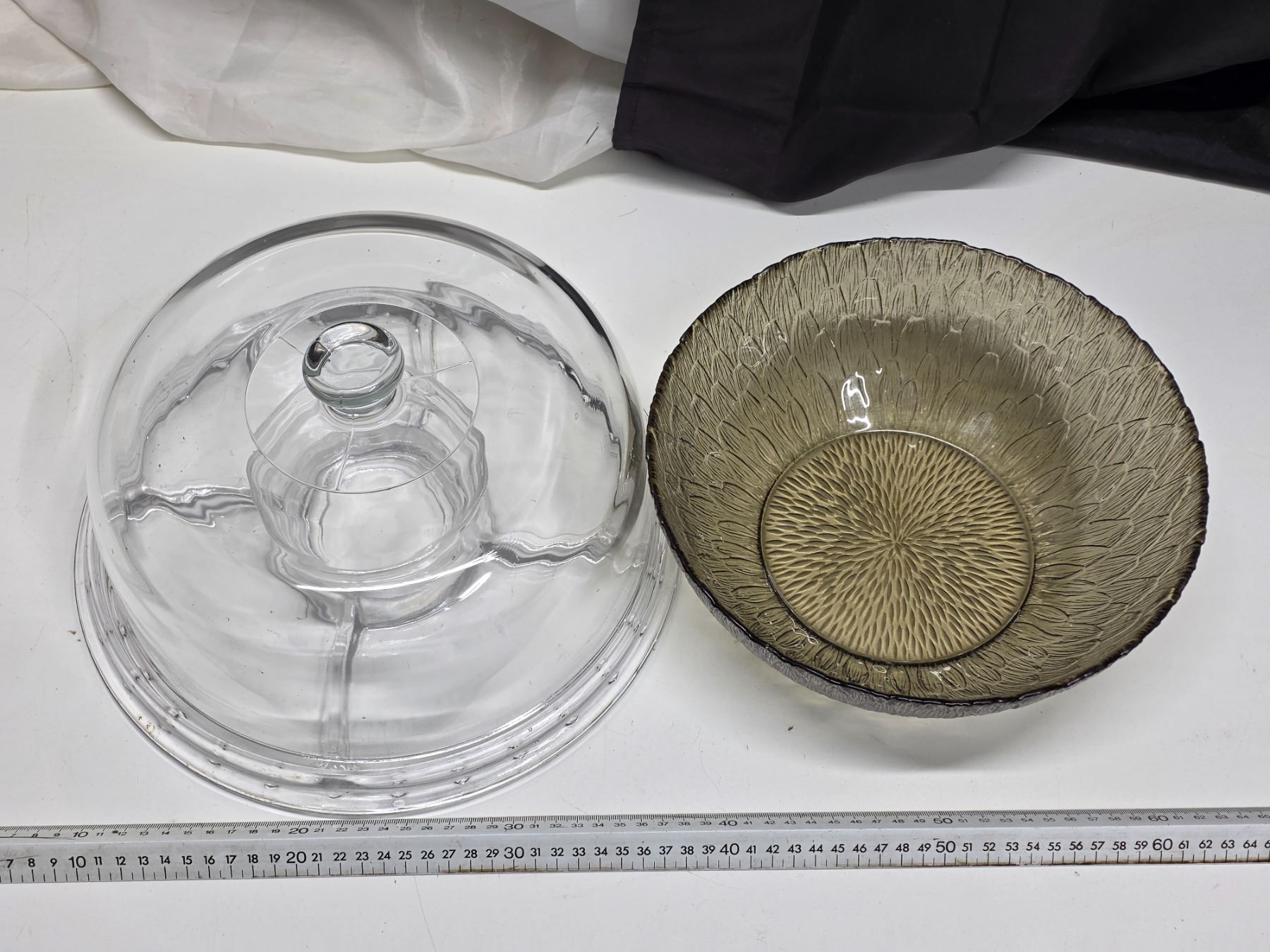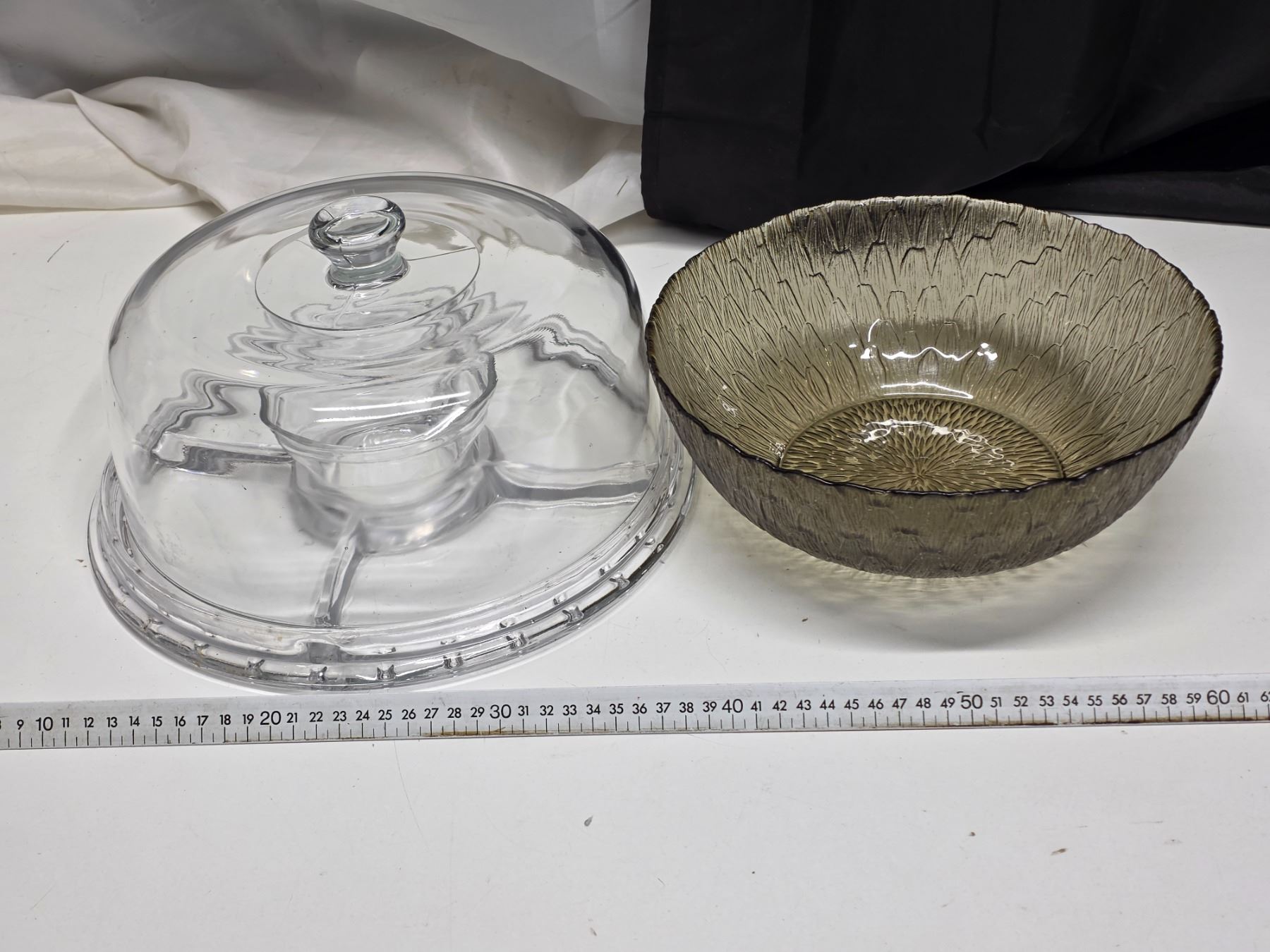 Glass cake dish and sunflower pattern glass bowl