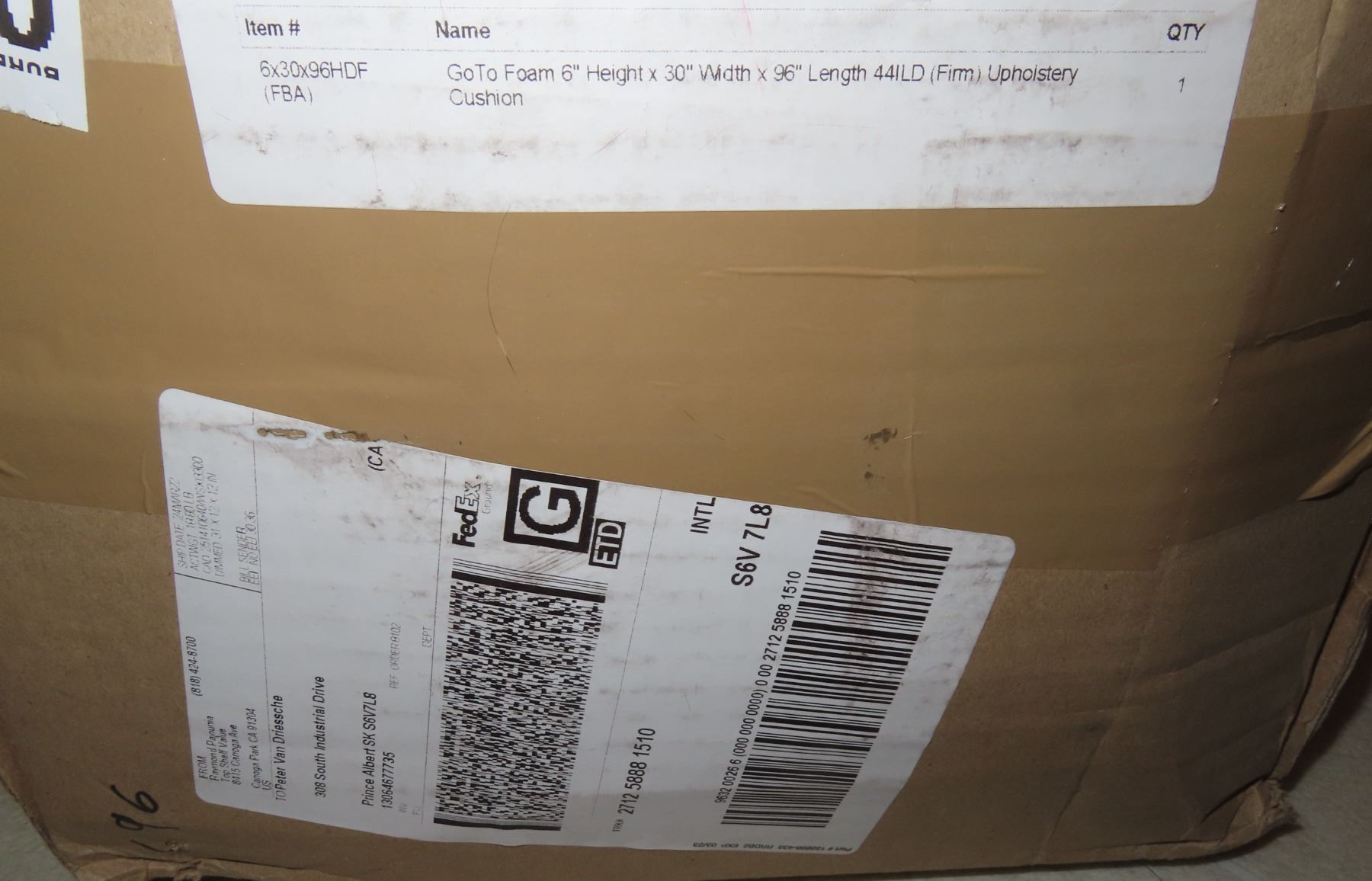 GoTo Foam 6" Height x 30" Width x 96" Length 44 ILD (Firm) Upholstery Cushion (brand new/mostly sealed)