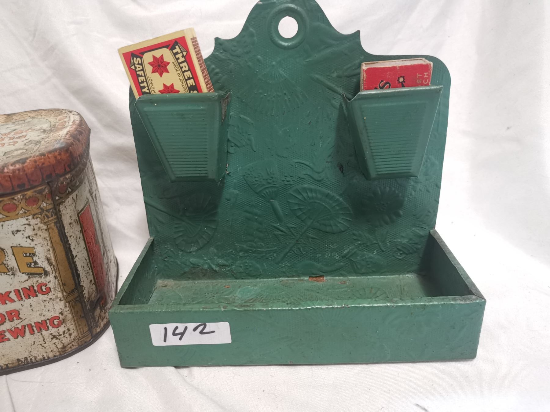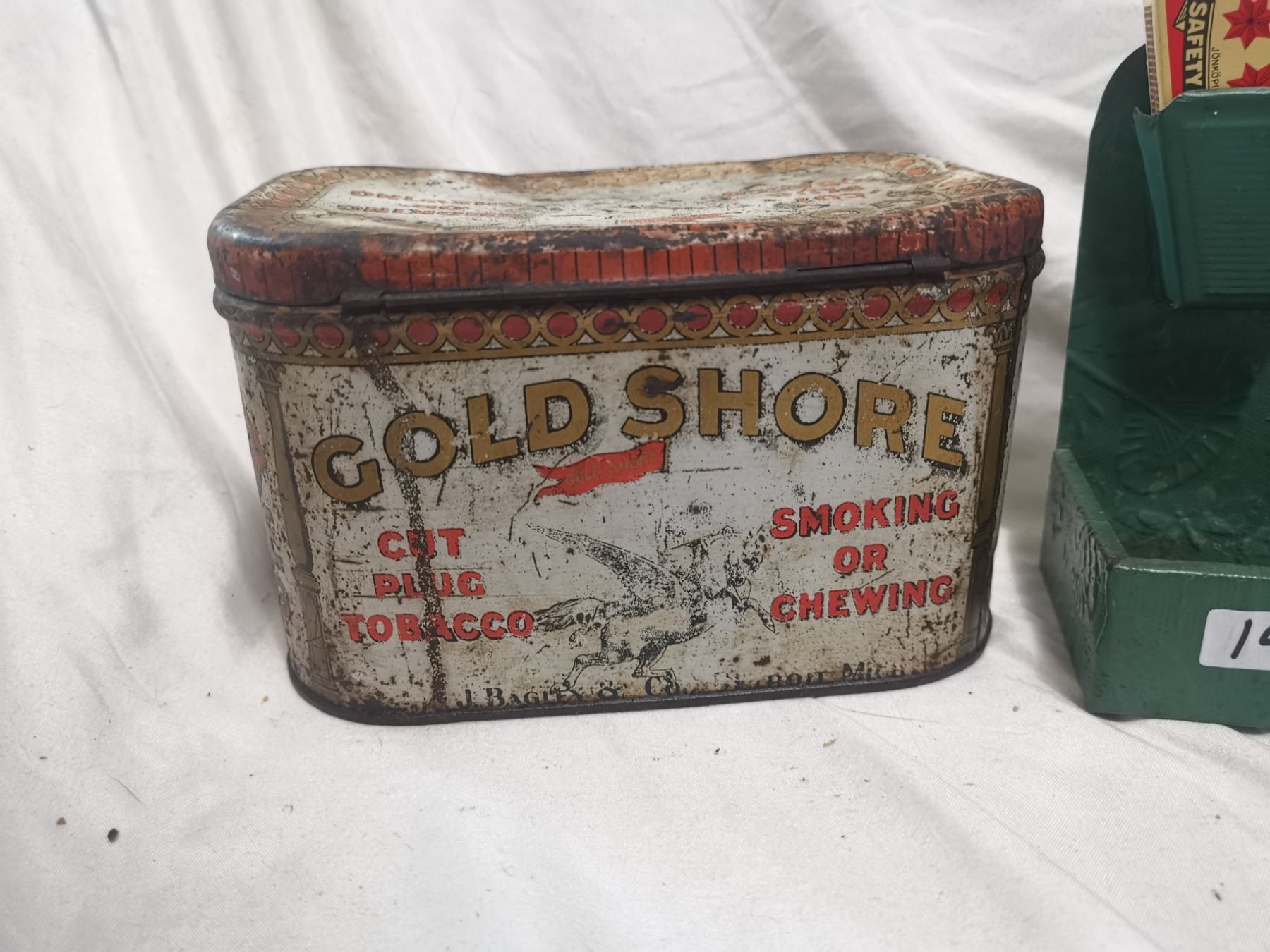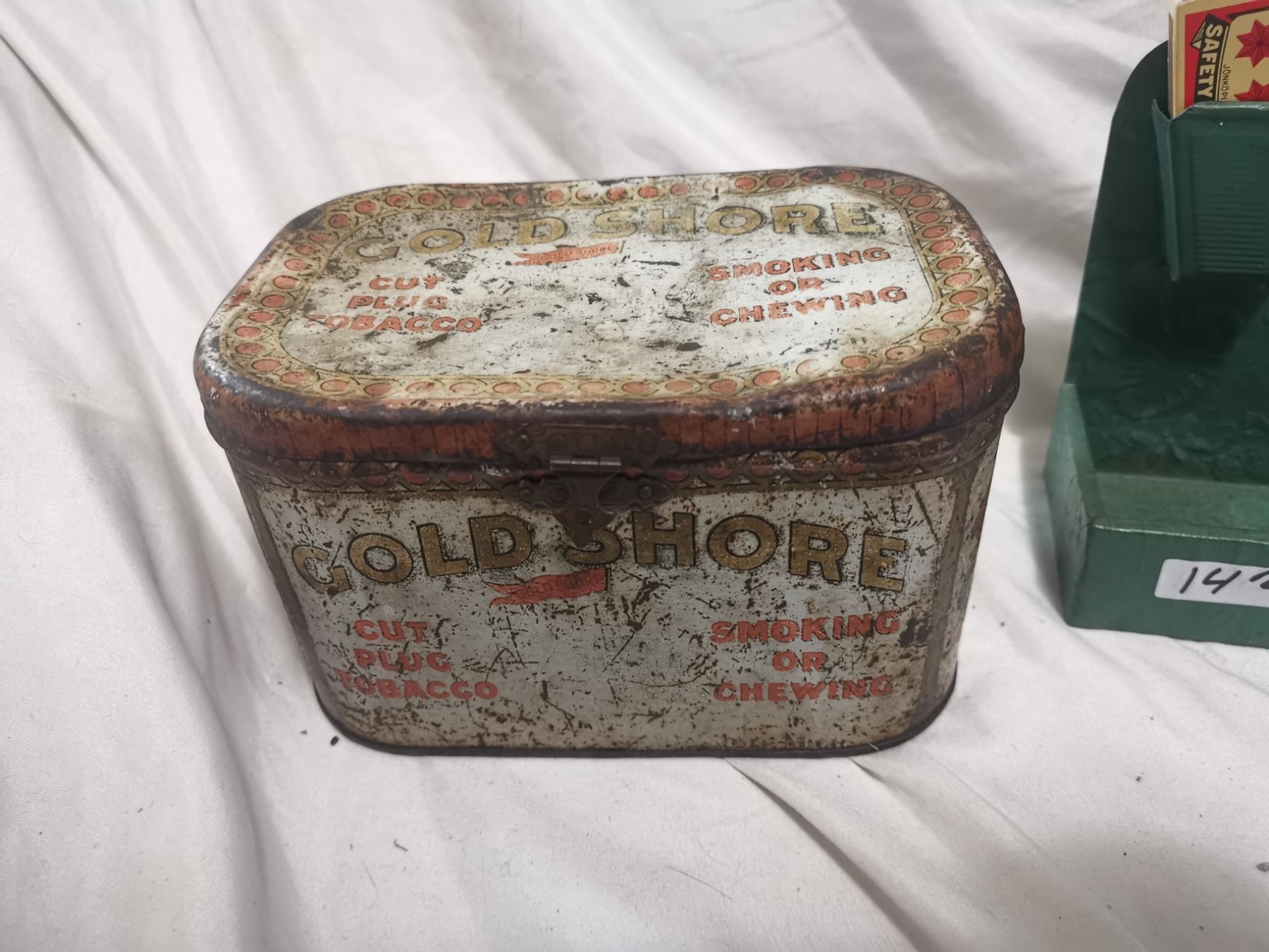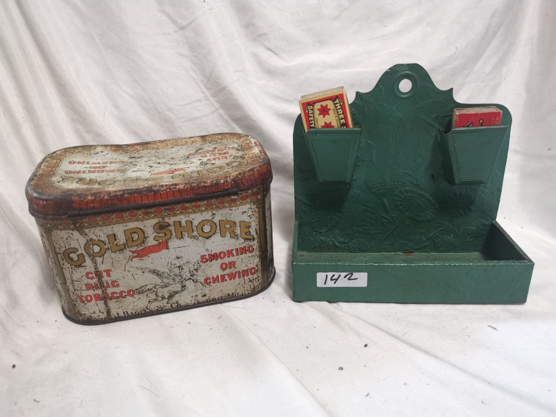 Gold Shore tobacco tin can & Old match holder