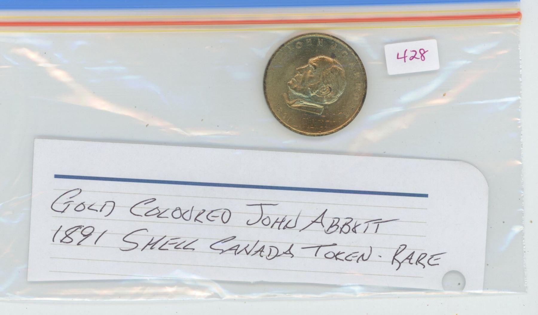 Gold colored John Abbott 1891 Shell Canada token - rare