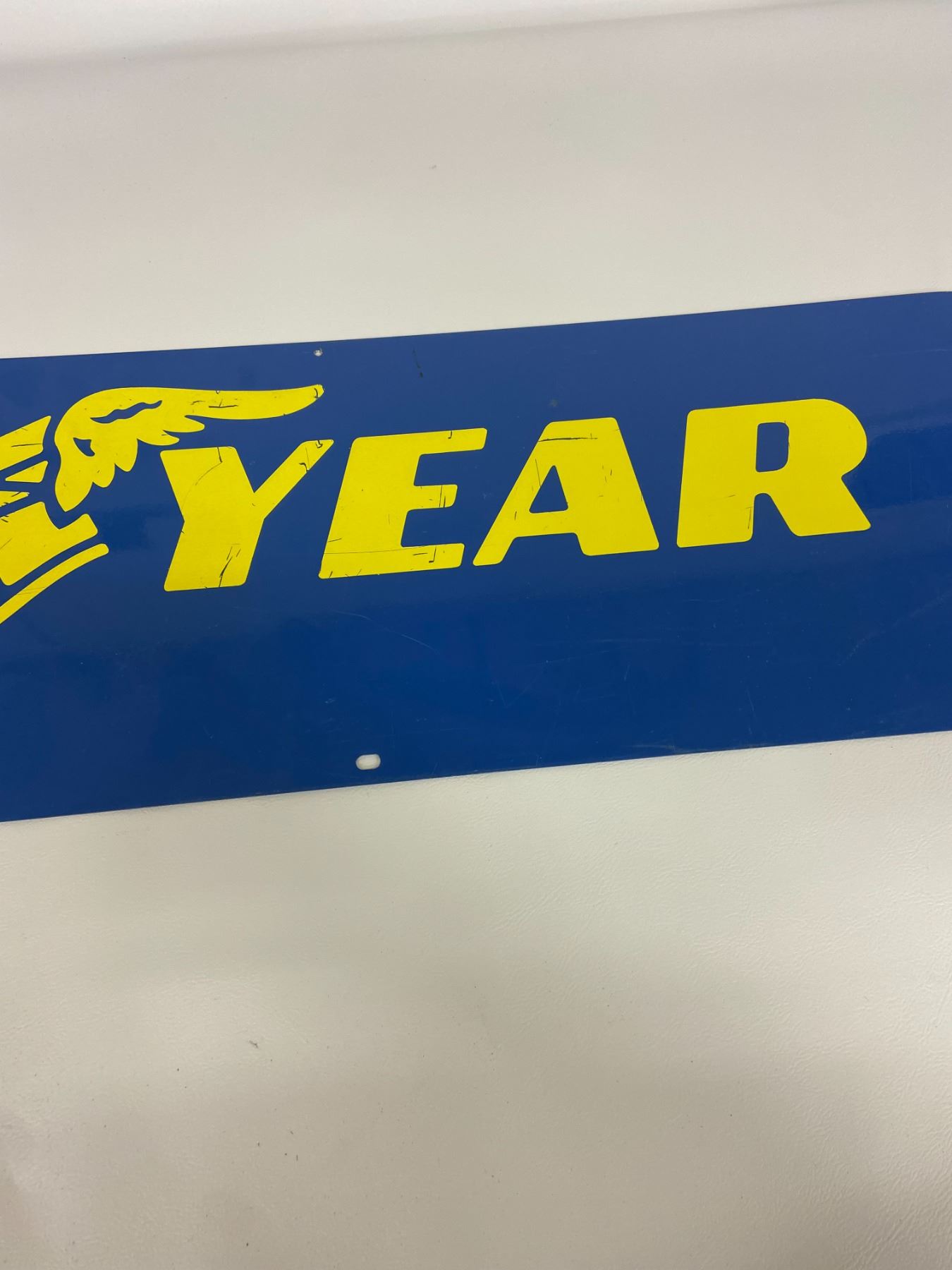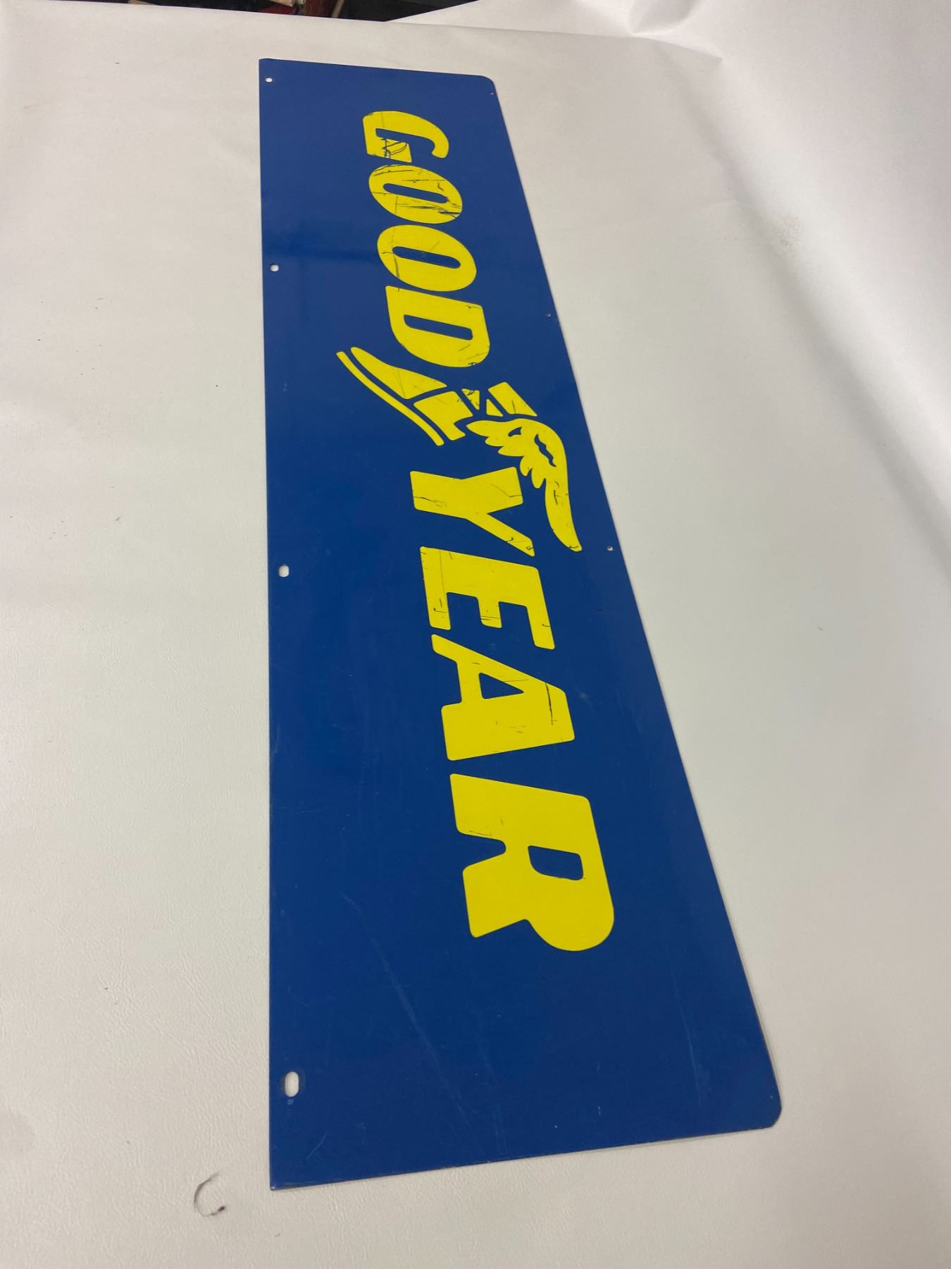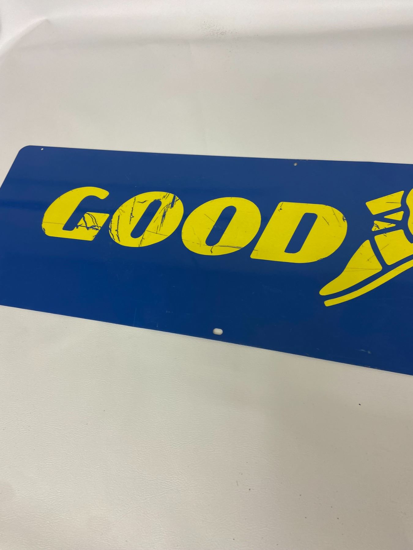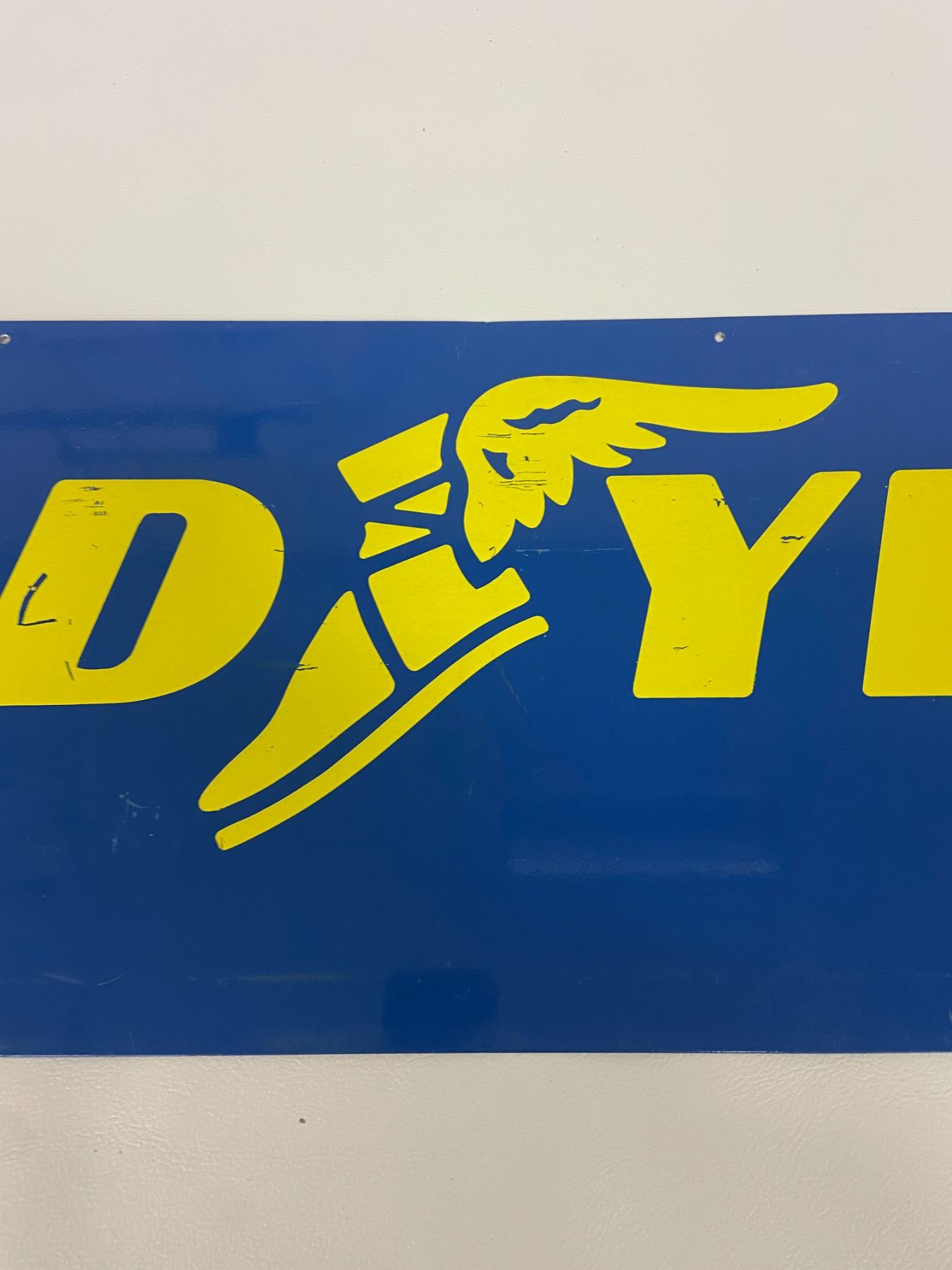 Goodyear 2 sided metal sign winged shoe 48"x12"
