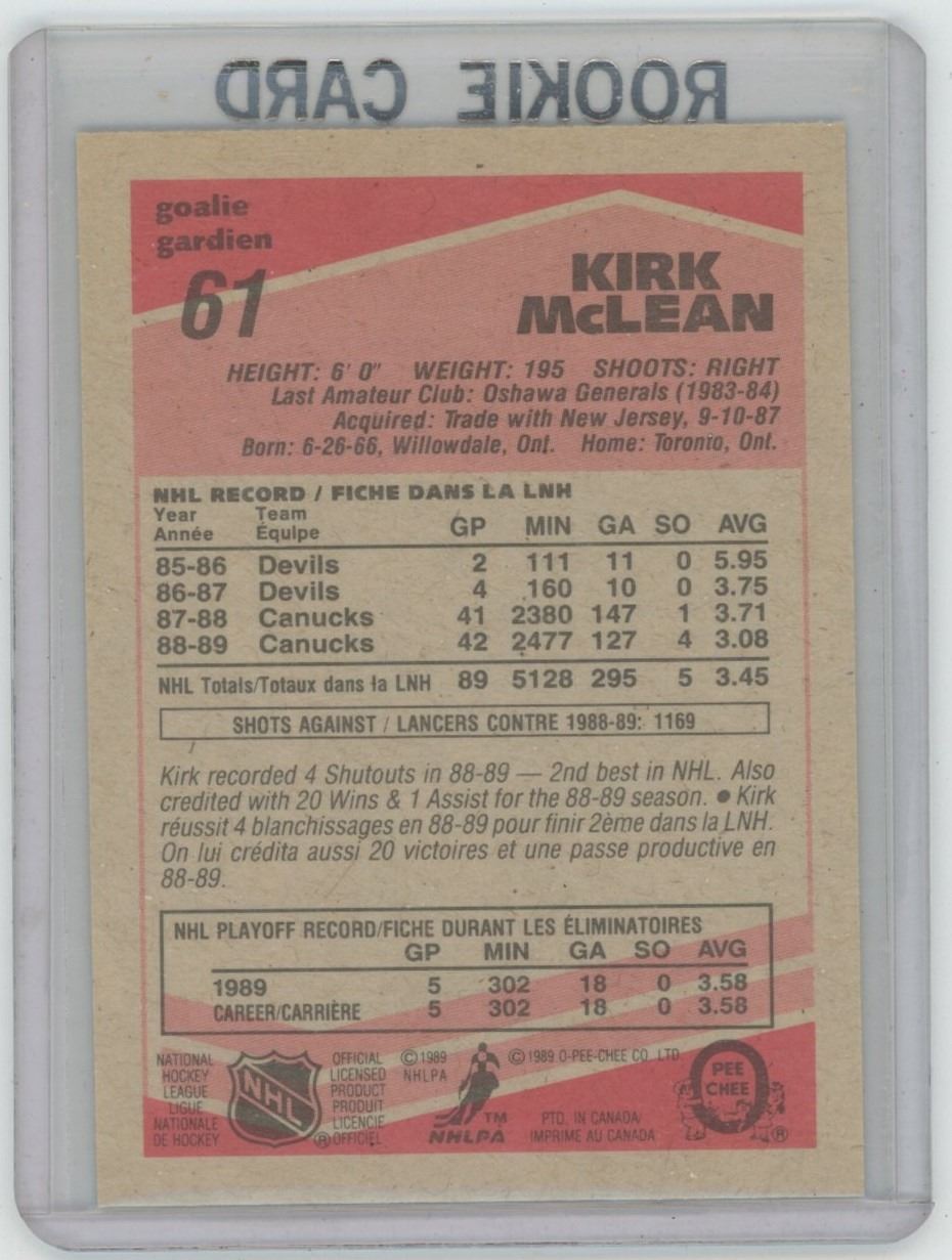 Gradable Rookies Kirk Mclean # 61