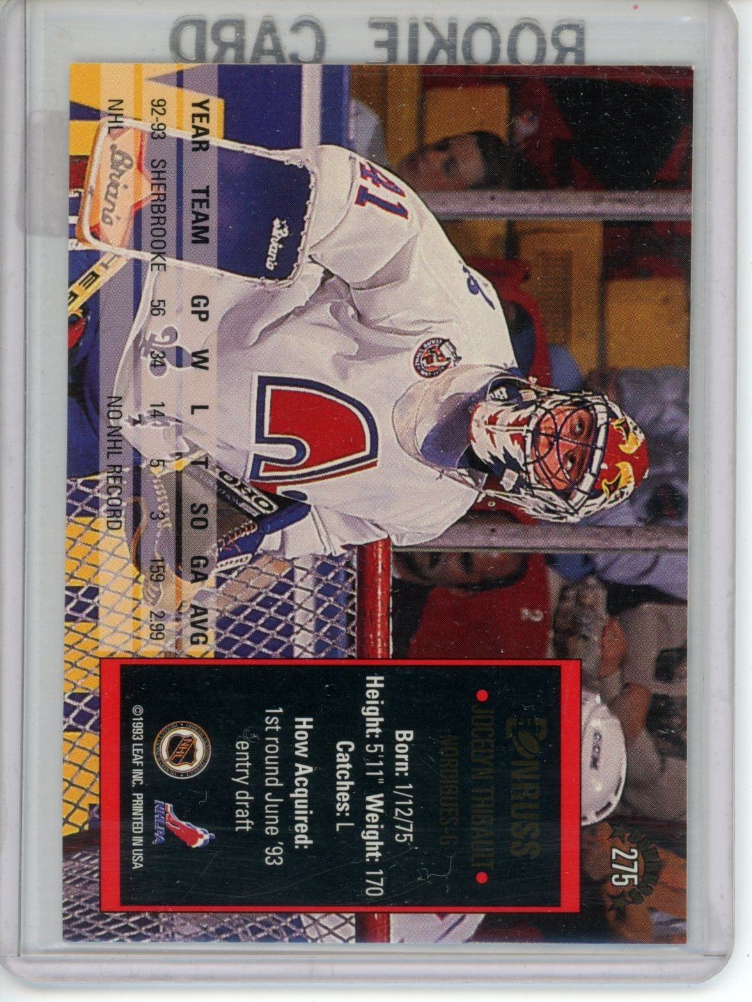 Gradable rookie card - Jocelyn Thibault #275