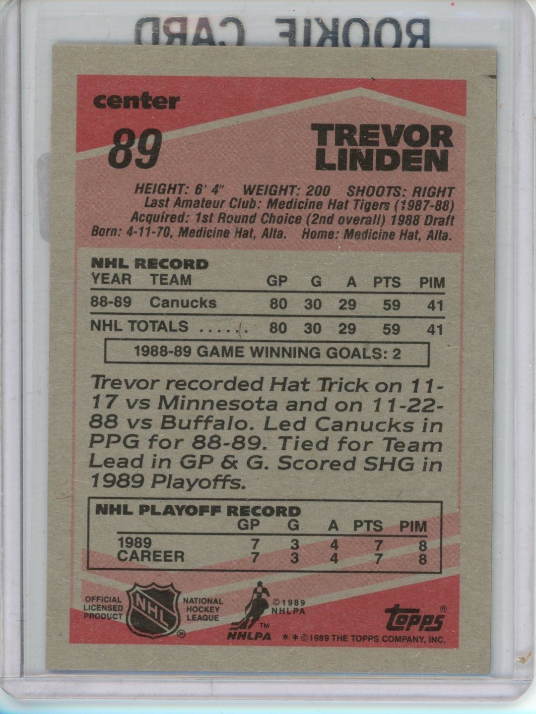 Gradable rookie card - Trevor Linden #89